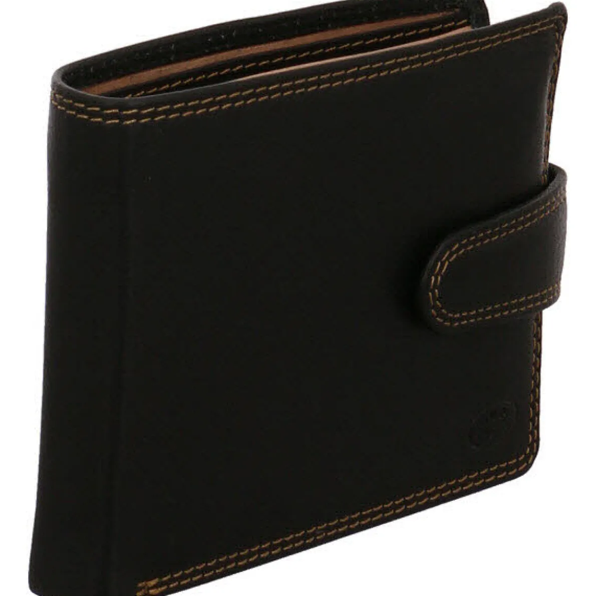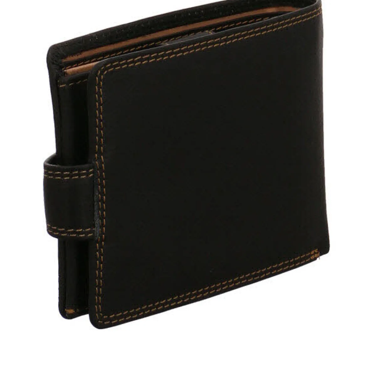 Diese klassische Geldbörse aus Echtleder in Schwarz von Old River überzeugt mit elegant sportlichem Look.
