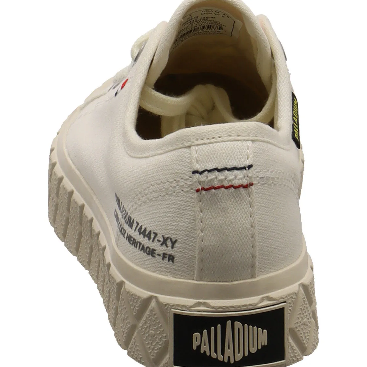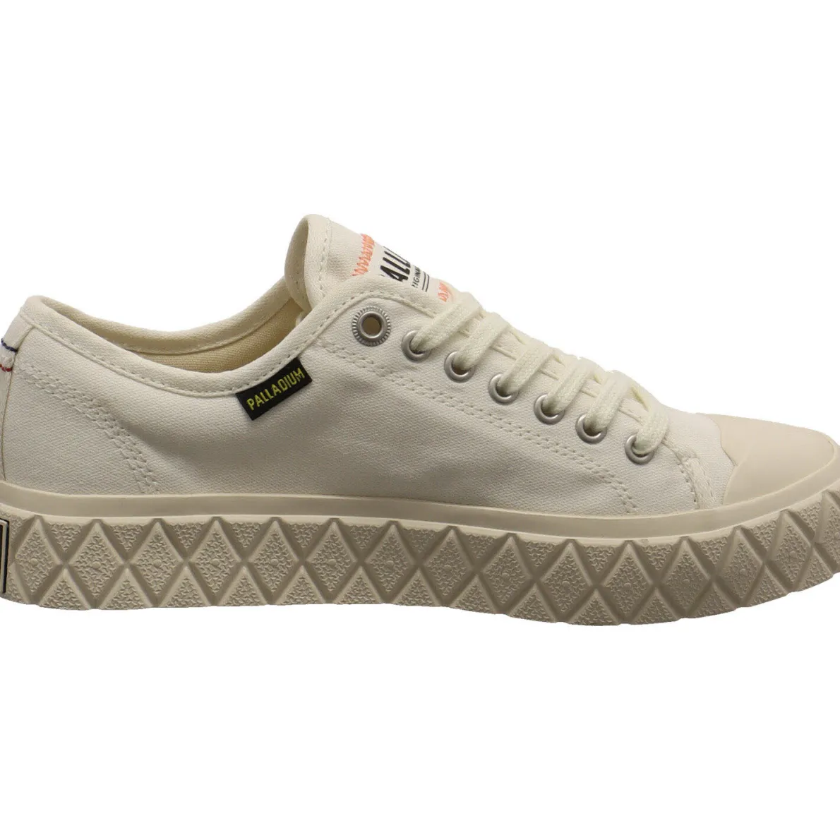 Der Palla Ace CVS Org ist ein modischer Damen Sneaker vom Trendlabel Palladium aus Frankreich. Er wurde aus weichem gewaschenem Canvas und Bio-Baumwolle in Weiß gefertigt und ist besonders am Schaft angenehm weich gepolstert. Durch die Schnürung kannst du den Schuh optimal auf deine Bedürfnisse anpassen. Die Innensohle ist als Wechselfußbett gearbeitet, so kannst du sie nach einem langen Tag optimal lüften.