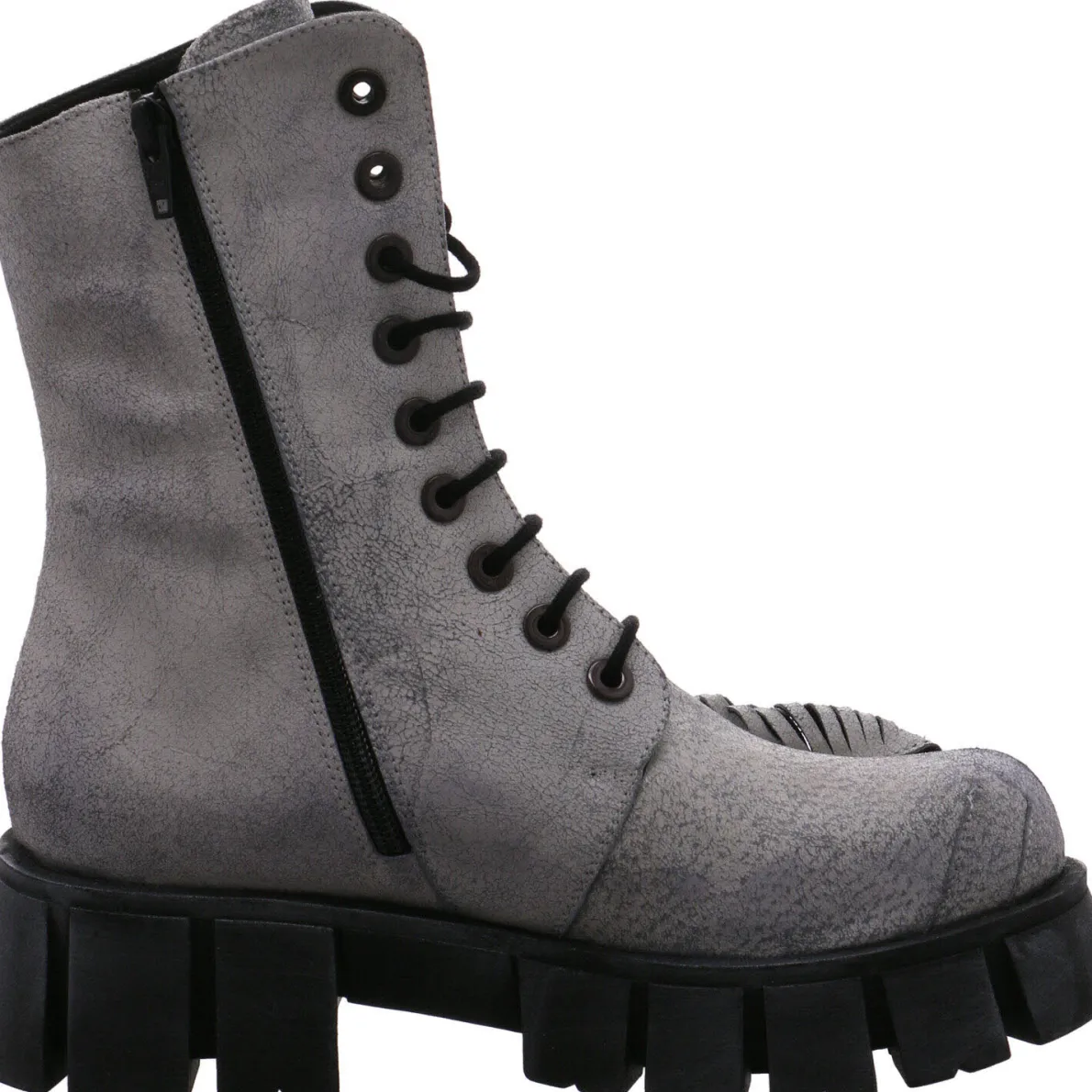 Gefertigt aus weichem Echtleder in Weiß Antik, fallen sofort die Applikation an der Seite und die besondere Farbgebung ins Auge, Die Metall Ösen machen die Schnürung robust und Ziernähte an der Schuhspitze passen perfekt zum Look. Durch den seitlichen Reißverschluss und die Schnürsenkel ist das An- und Ausziehen unkompliziert. Die kräftige Laufsohle mit Blockabsatz passt perfekt zum Look und gibt guten Halt.