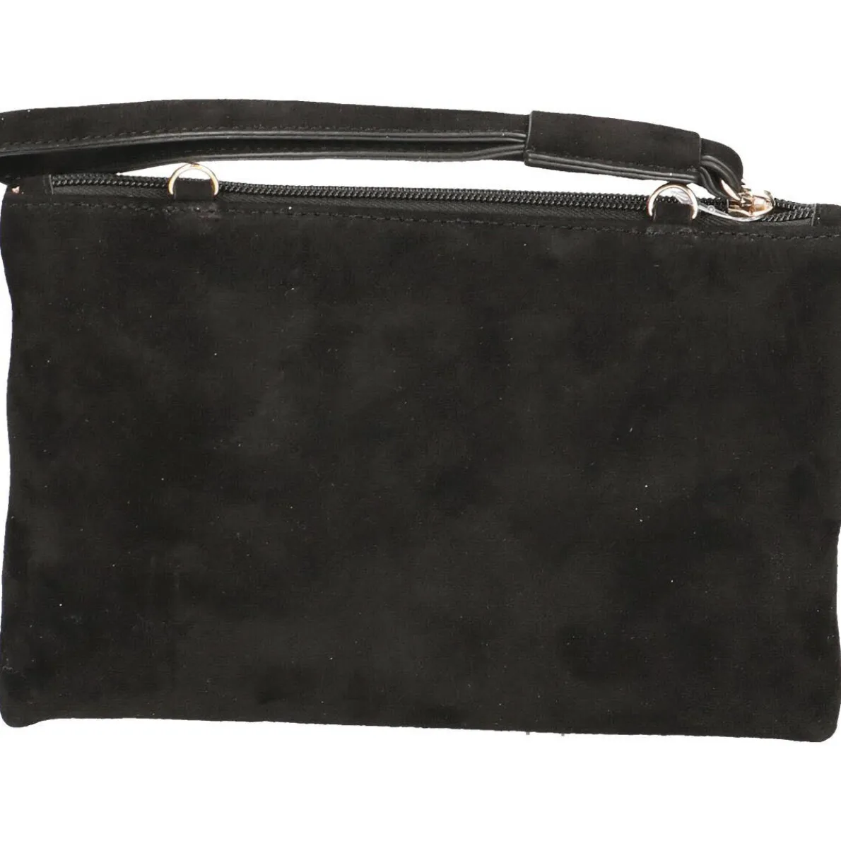 Das hochwertige textile Obermaterial ist mit einer feinen Nubuk-Haptik versehen, welche besonders edel wirkt. Durch die stilvolle und abnehmbare Kette kann die Damen Handtasche auch über der Schulter getragen werden. In dem kleinen Hauptfach findet das Notwendigste für den Abend Platz.