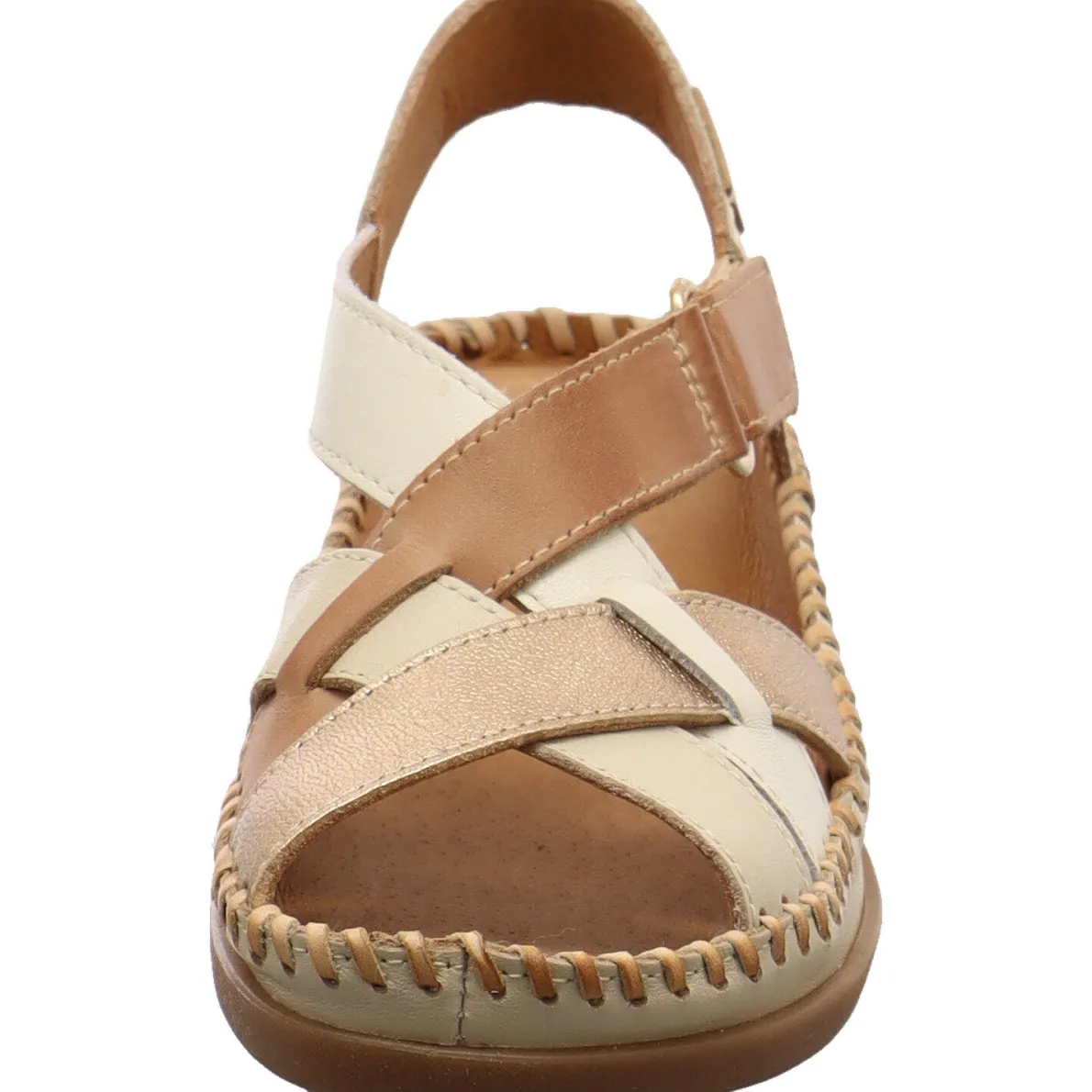 Diese ausgefallene und ausgesprochen feminine Damen Keilsandalette Cadaques in Beige von Pikolinos zieht garantiert Blicke auf sich.