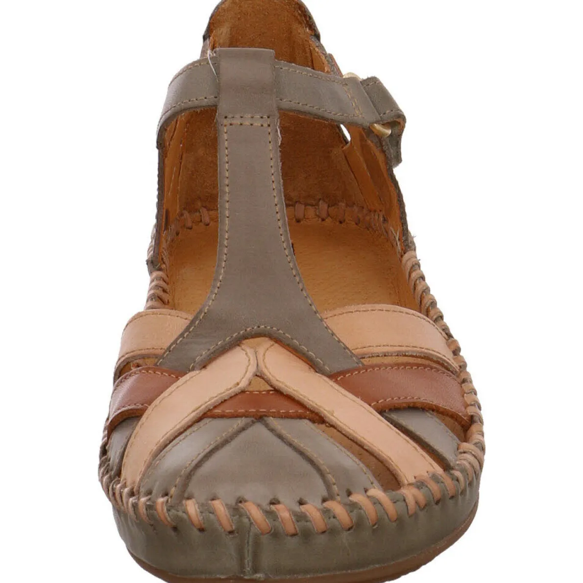 Diese ausgefallene und ausgesprochen feminine Damen Sandale P.Vallarta in Grün und Braun von Pikolinos zieht garantiert Blicke auf sich.