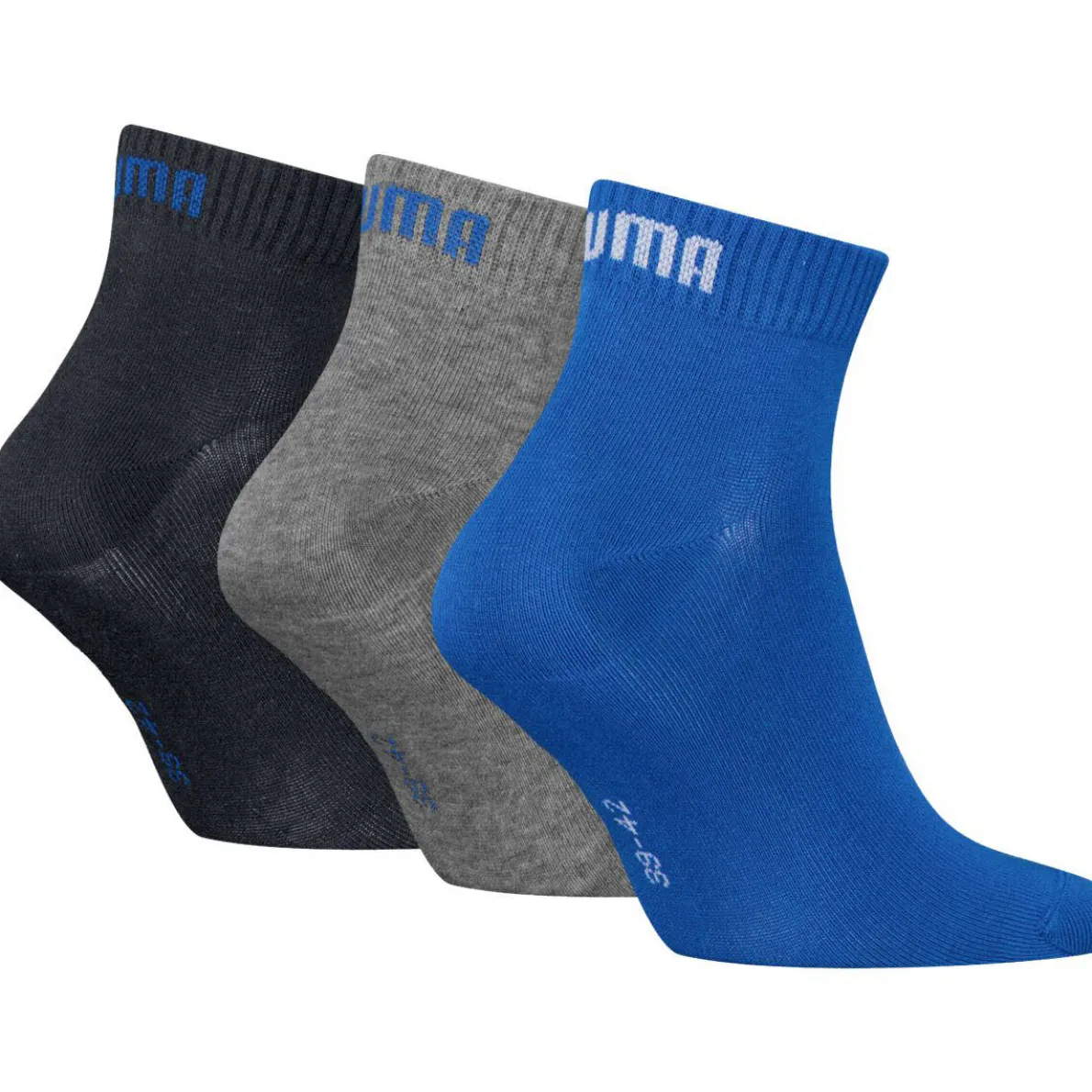 Diese Damen und Herren Unisex Quarter Socken in Blau und Grau von Puma überzeugen durch ihren sportiven Look bei höchster Funktionalität. Die flache Naht an der Fußspitze verursacht auch bei längerem Tragen keine Druckstellen und die hohe Elastizität verspricht besten Tragekomfort. Das eingestrickte Logo rundet das Design ab. Eine super Socke für Sport und Freizeit!