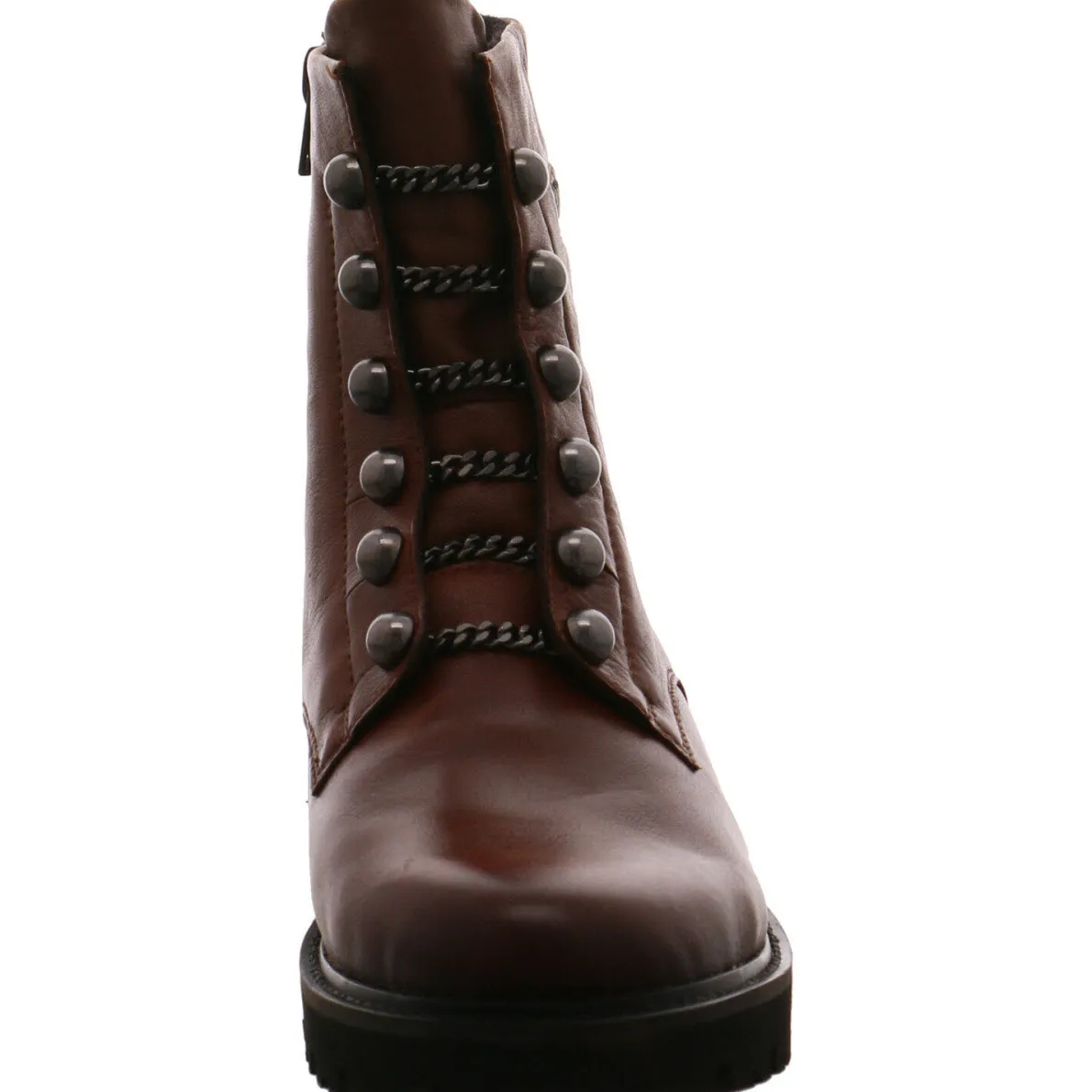 Diese Damen Boots von Remonte im angesagten Bikerlook überzeugen mit einem strapazierfähigen und robusten Obermaterial aus Echtleder in Braun. Optische Highlights sind die raffinierten Details wie der Zierreißverschluss und der Kettenschnürung mit Nieten.