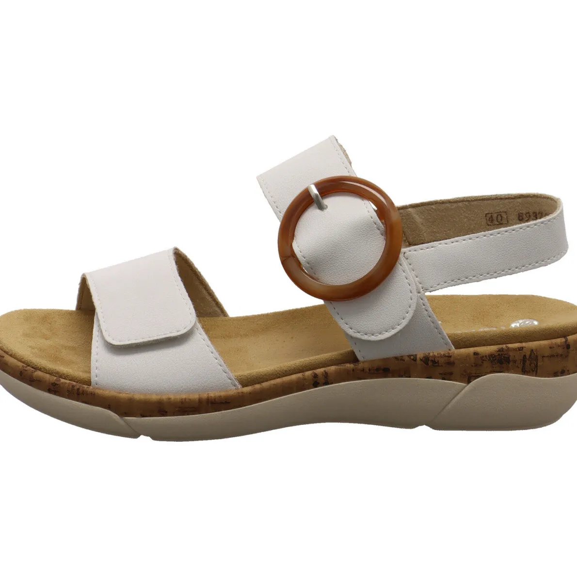 Das beschichtete Echtleder in Weiß wird durch die Zierschnalle in Bernstein Farben am Knöchelriemen toll in Szene gesetzt. Darunter verbirgt sich ein Klettverschluss. Auch am vorderen Riemen findest du einen und kannst so den Schuh optimal an deinen Fuß anpassen. Ein kleiner Dehngummi am Fersenriemen hilft zusätzlich bei einem leichten Einstieg. Die Remonte Soft Innensohle ist angenehm weich gepolster und als Wechselfußbett gearbeitet, so kannst du deine eigenen Einlagen verwenden.