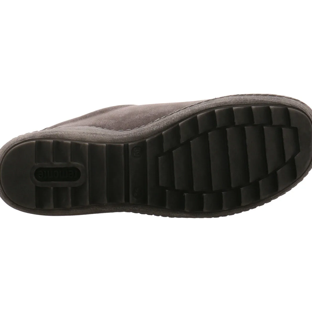 Gefertigt aus Kunstleder in Grau, ist er mit der RemonteTex Membran ausgestattet, dadurch ist er wasserabweisend und atmungsaktiv. Der leichte Metallic Schimmer und die Overlay Struktur geben ihm seinen individuellen Look.