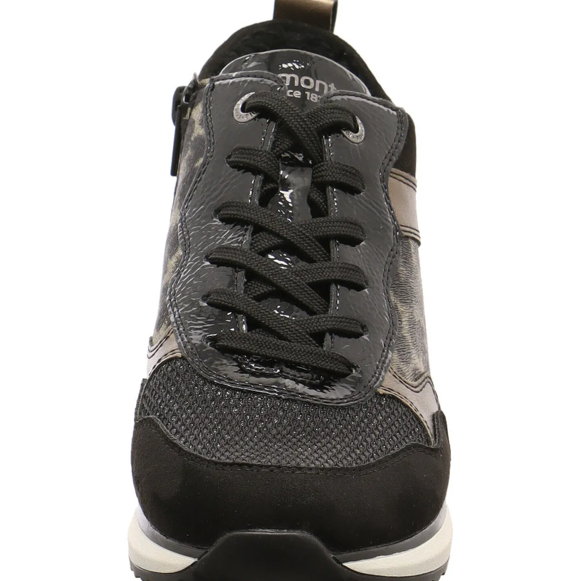Der gepolsterte Schaft bietet maximalen Komfort. Der Reißverschluss und die regulierbare Schnürung, sowie die Lasche an der Ferse ermöglichen einen leichten Einstieg. Die Remonte Soft Innensohle ist angenehm weich gepolstert und als Wechselfußbett gearbeitet.