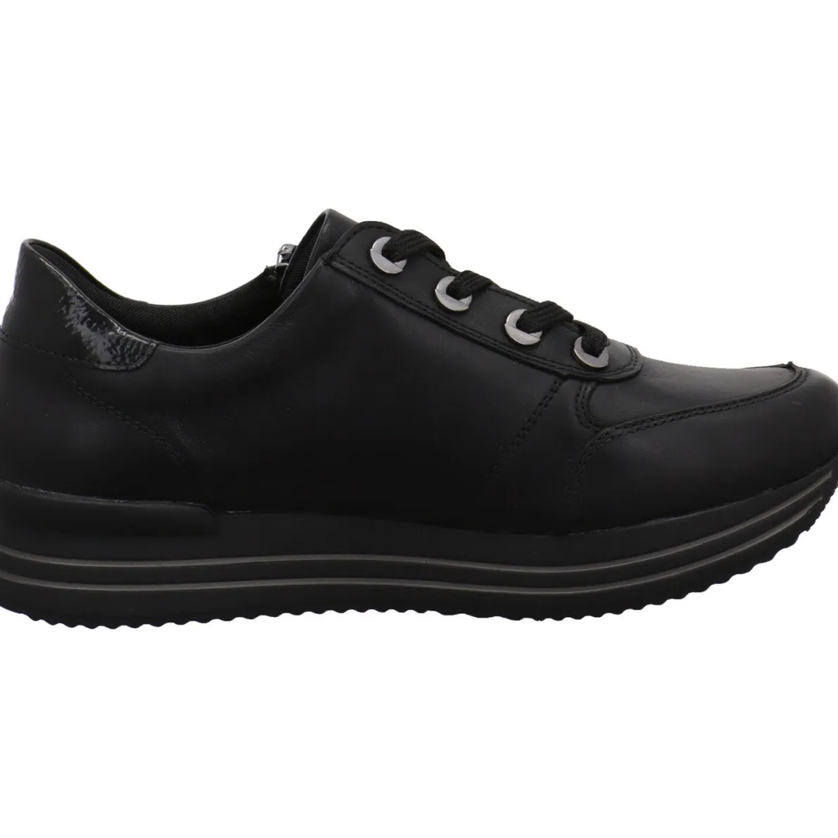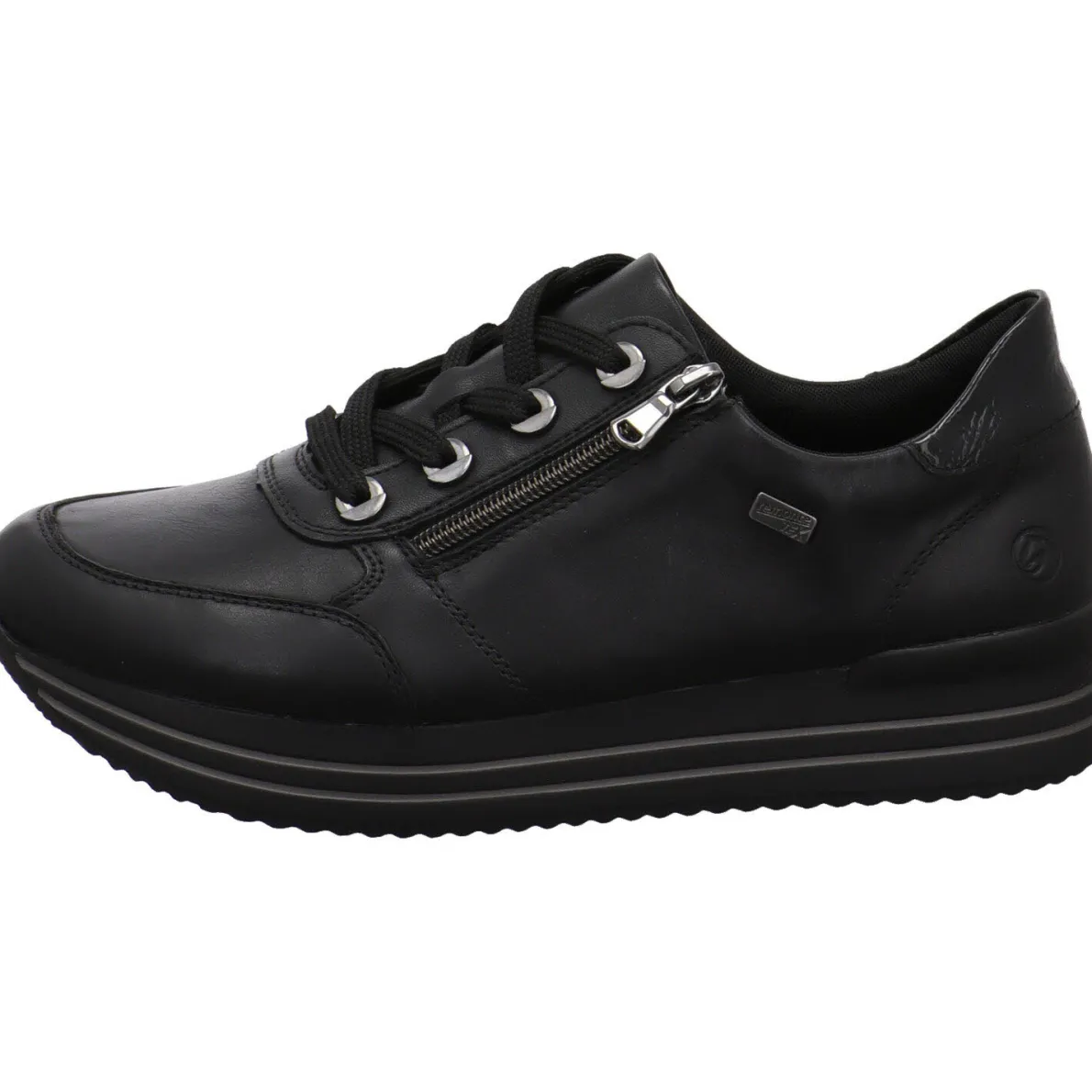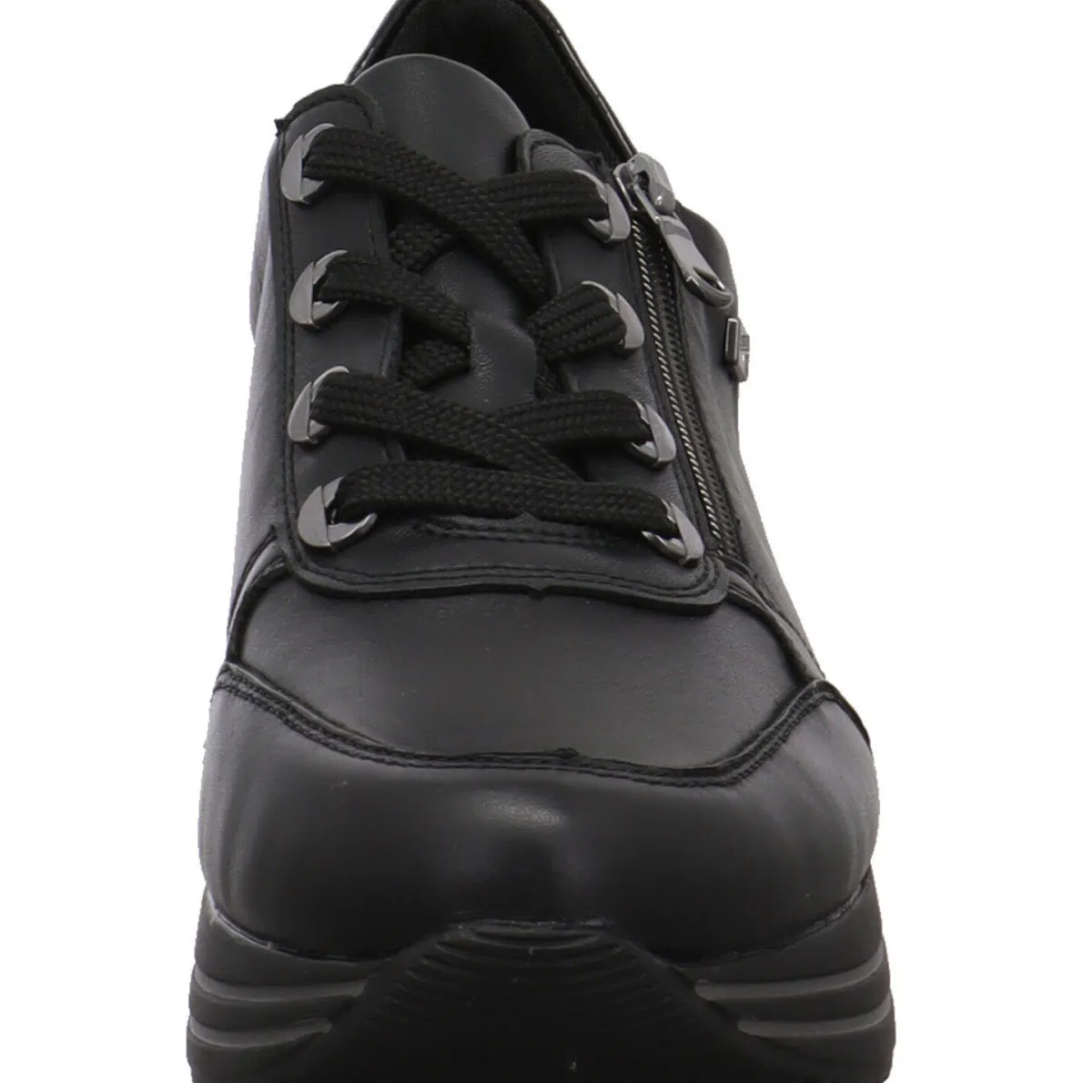 Der seitliche Reißverschluß hilft bei einem leichten Einstieg und mit der Schnürung kannst du ihn genau auf deine Bedürfnisse anpassen. Die Remonte Soft Innensohle ist als Wechselfußbett gearbeitet und besonders atmungsaktiv, dank der Perforierung im Vorderfuß Bereich. Der Schuh ist mit der Remonte Tex Ausstattung versehen. So meistert er auch regnerische Herbst Tage, da er wasserabweisend ist. Die sportlich geformte Laufsohle hat einen leichten Grip und passt super zum Look.