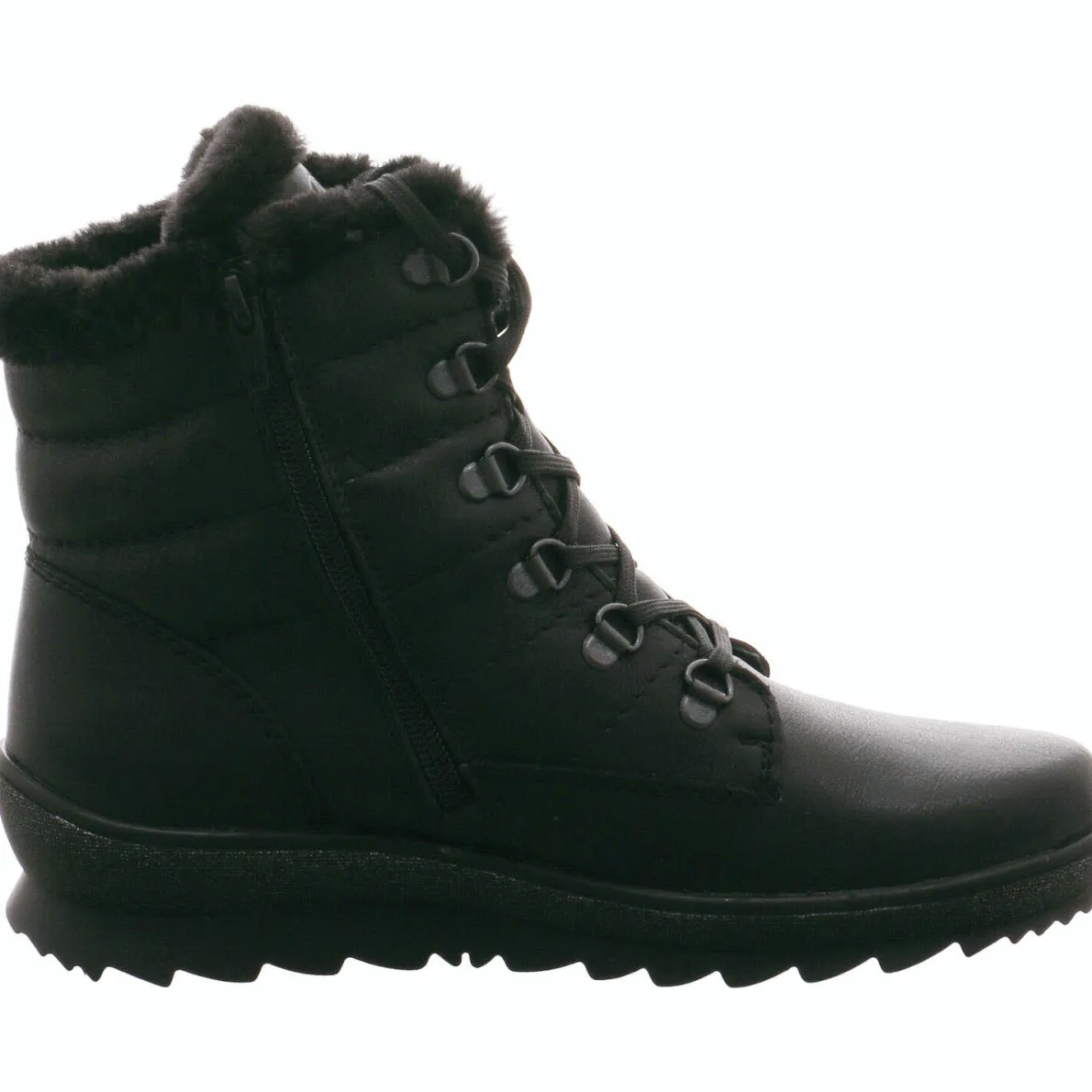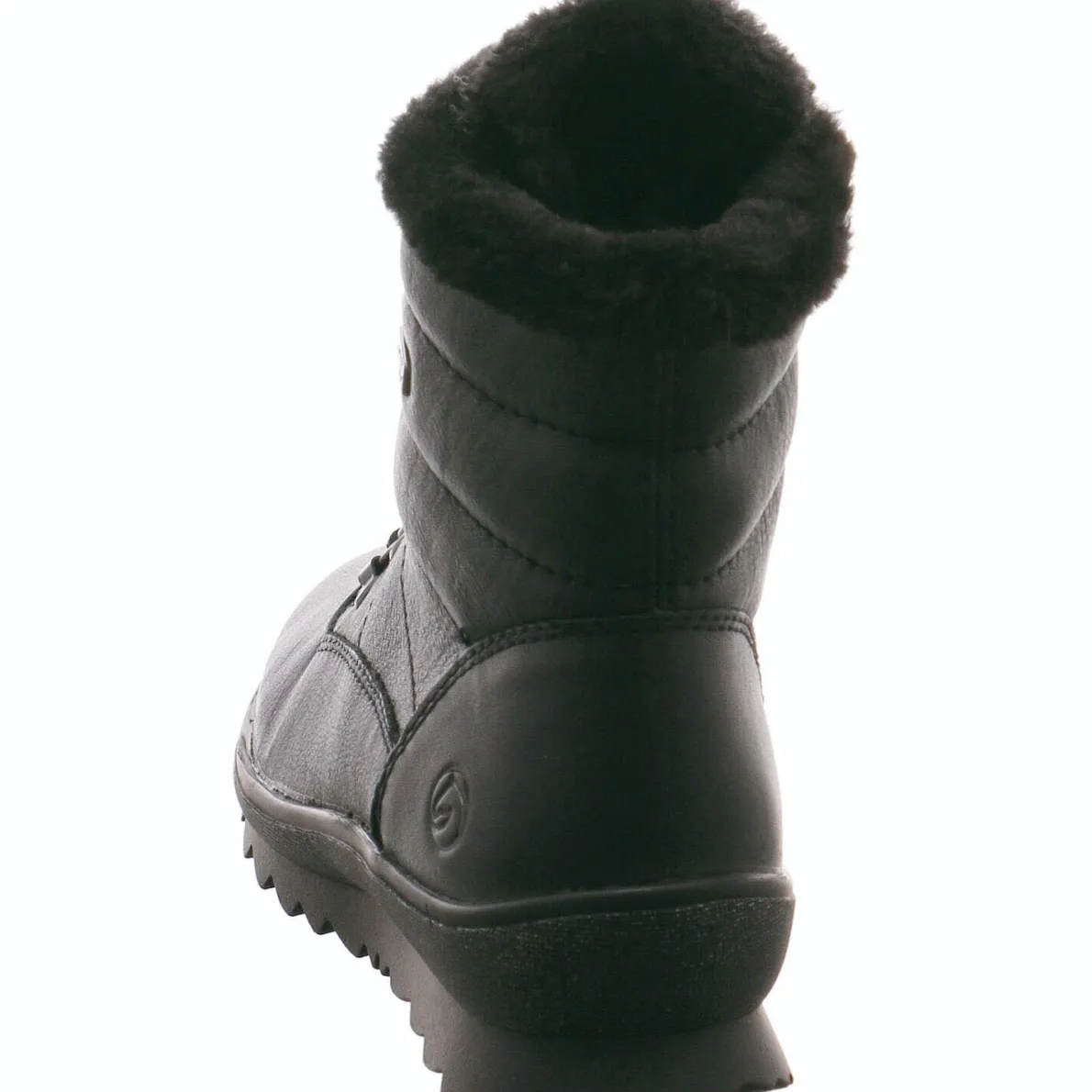 Diese sportliche Damen Winterstiefel in Schwarz von Remonte überzeugt nicht nur mit ihrem einzigartigem Design, sondern auch mit ihrer Funktionalität. Der Schuh wurde aus griffigem Echtleder gefertigt und ist im Inneren dick und warm aus Schurwolle gefüttert.