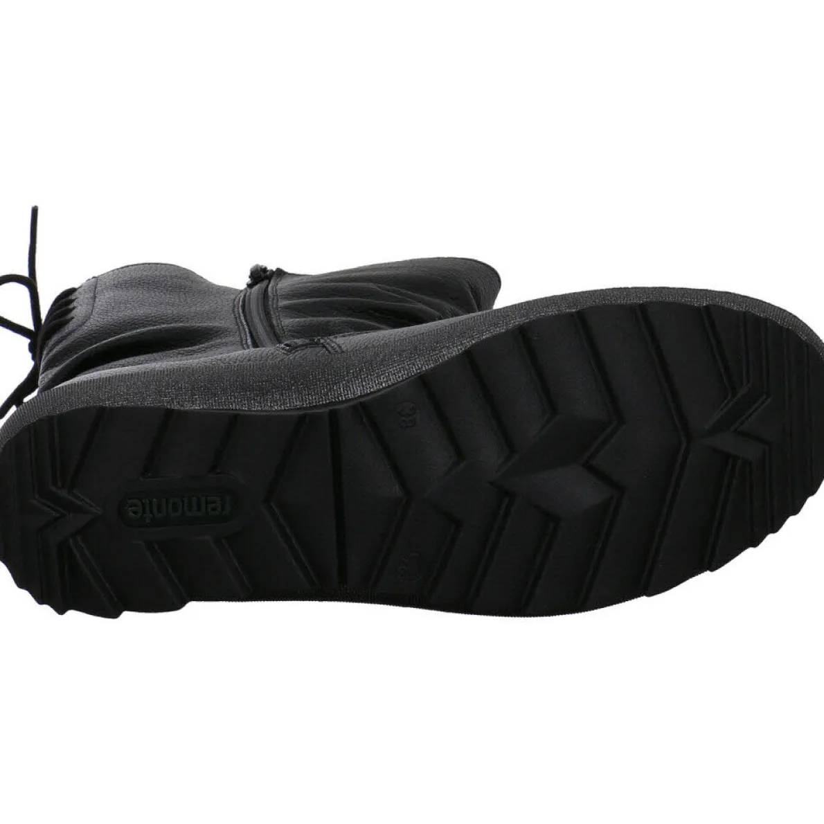 Dieser sportliche Damen Winterstiefel von Remonte wurde aus hochwertigem genarbtem Echtleder in Schwarz gefertigt.