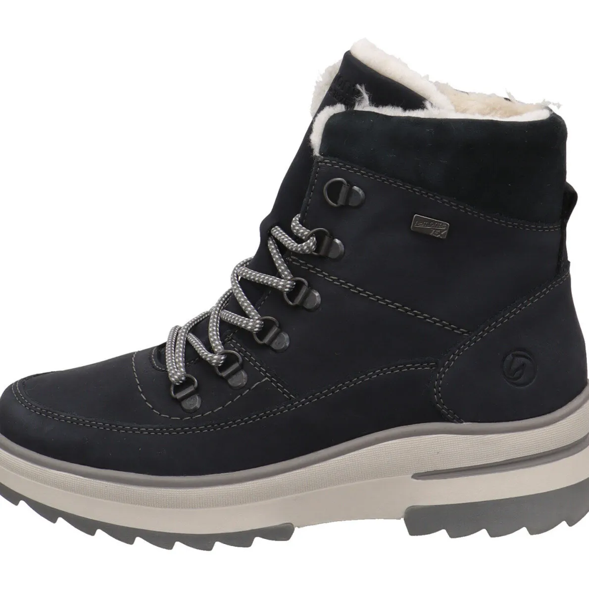 Die Remonte Soft Innensohle, ist dabei angenehm weich und komfortabel. Ein weiteres, sehr nützliches Highlight findest du in der Laufsohle. Diese ist gut profiliert und hochgezogen, zudem ist sie mit Fieber-Grip ausgestattet. Sie verfügt über kleine Fiberglas Areale, diese mikroskopisch kleinen Glasfasern rauen die Struktur der Sohlenoberfläche auf und wirken auf eisglatten Böden rutschhemmend.