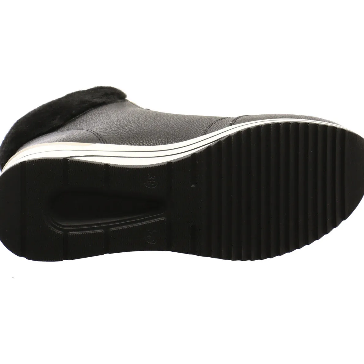 Er ist Extra Weit gearbeitet und bietet dadurch den Füßen deutlich mehr Platz. Die Innensohle ist als Wechselfußbett gearbeitet und kann durch eigene Einlagen oder eine Thermosohle ersetzt werden. Der bequeme Keilabsatz gibt guten Halt und wird durch metallisch schimmerne Einsätze toll in Szene gesetzt.