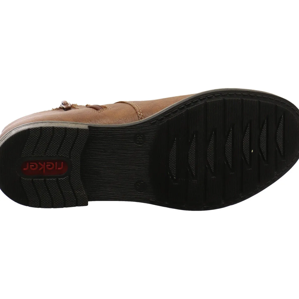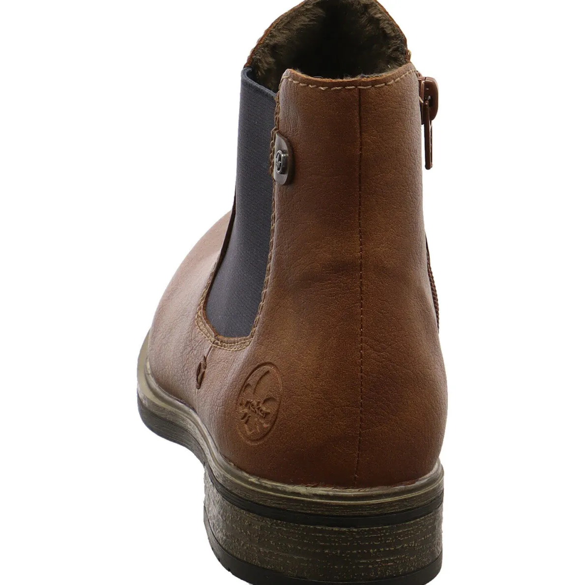 Gehst du gerne spazieren oder brauchst du einen Schuh für den Herbst? Dann ist der Damen Chelsea Boot von Rieker der perfekte Begleiter. Das Obermaterial aus Kunstleder in Braun ist an der Außenseite mit einem Stretcheinsatz in Blau versehen. Dieser hilft dir bei einem leichten Einstieg, in Verbindung mit dem Reißverschluss auf der Innenseite. Die AntiStress Innensohle ist sehr angenehm zu tragen. Das flauschige und warmhaltende Innenfutter hält die Füsse warm, auch wenn es kalt ist. Die Steppnaht und die moderne Sohle peppen das Model auf.