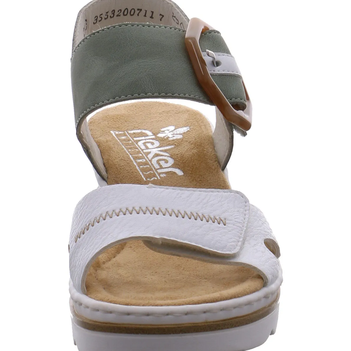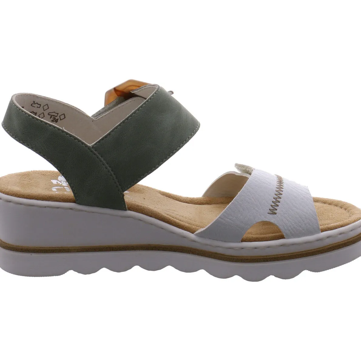Feminin und vielseitig, überzeugt diese Keilsandalette für Damen aus dem Hause Rieker im kommenden Sommer.