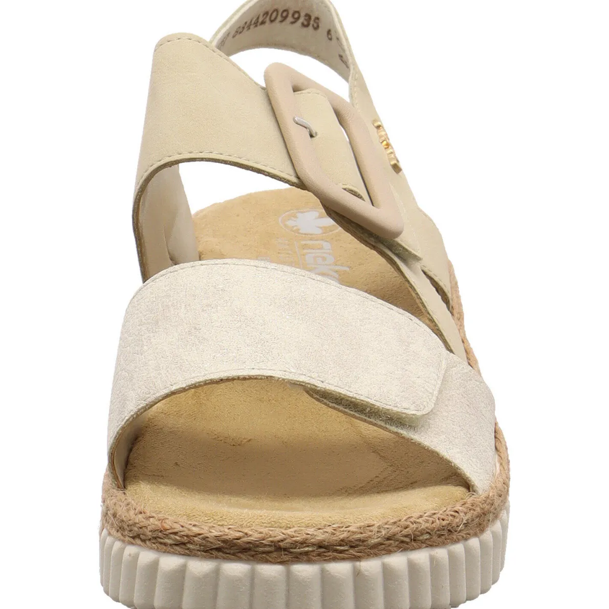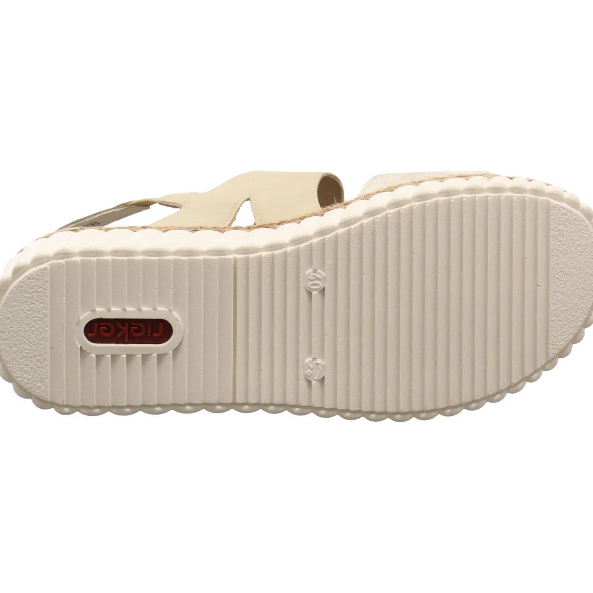 Modisches Design und Bequemlichkeit sind in dieser Damen Keilsandalette von Rieker vereint.
