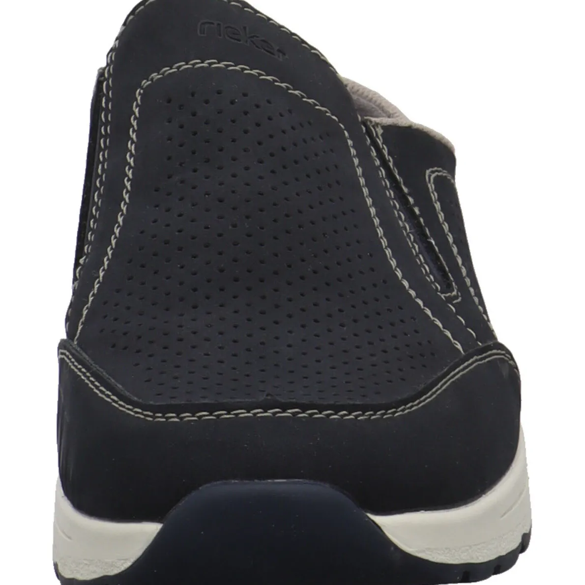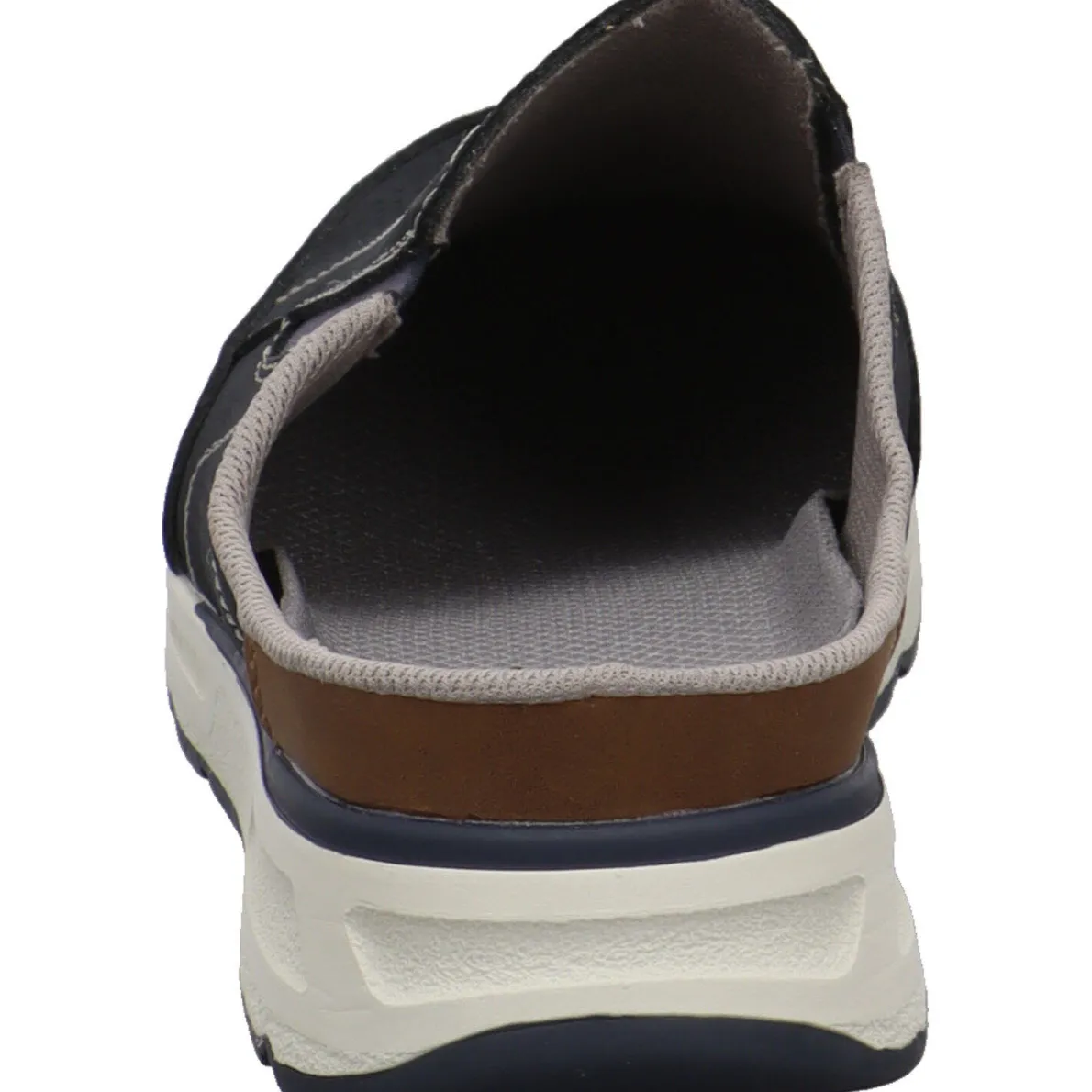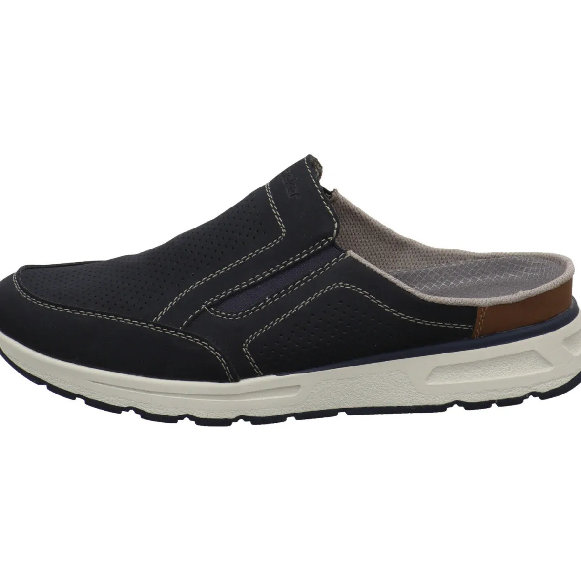 Diese bequeme Herren Pantolette in Blau ist ein Klassiker aus der aktuellen Sommer Kollektion von Rieker. Das sportliche Design aus Kunstleder wird durch die Lasercuts, welche für ein optimales Fußklima sorgen und der Laufsohle im Sneaker Look unterstrichen. Die seitlichen Stretcheinsätze sorgen für eine gute Passform und einen leichten Einstieg. Akzente in Braun runden das sportliche Design perfekt ab. Die Innensohle sorgt für ein angenehm weiches Laufen, durch ihre Antistress Ausstattung. Gleichzeitig ist sie als Wechselfußbett gearbeitet, so können eigene Einlagen verwendet werden.