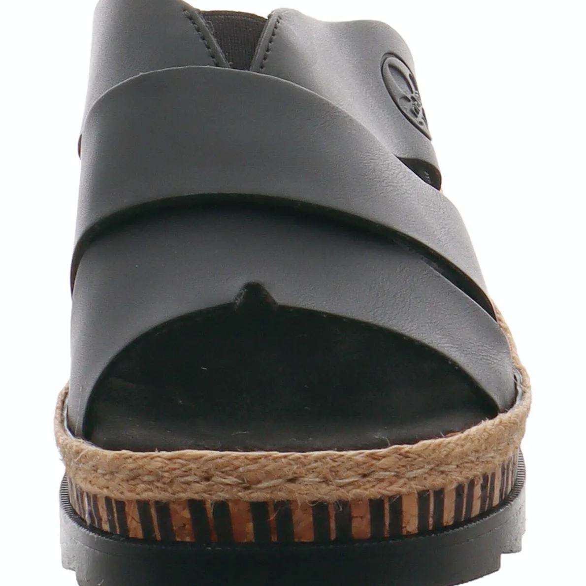 Das Obermaterial aus Kunstleder in Schwarz begeistert durch die schöne Linienführung der Riemen. Die AntiStress Laufsohle ist angenehm weich und bietet einen hervorragenden Tragekomfort. Der Keilabsatz in Schwarz ist mit Kork Optik versehen und unterstreicht das modische Design perfekt.