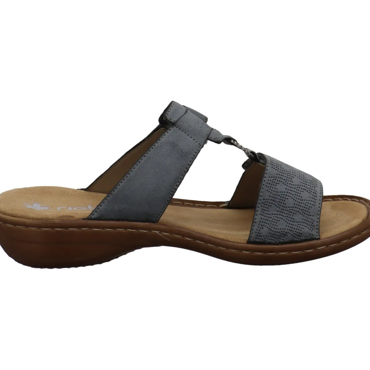 Eine modische Pantolette für den Sommer, ist dieses schöne Modell von Rieker. Sie wurde aus pflegeleichtem Kunstleder in Blau gefertigt. Beide Riemen sind mit einem Klettverschluss versehen, dadurch kommst du bequem in den Schuh und kannst ihn genau auf deine Bedürfnisse anpassen. Sie sind mit einem Metallring stilvoll miteiner verbunden und auf dem vorderen Riemen bilden kleine Lasercuts ein schönes Muster. Die Antistress Innensohle ist angenehm weich. Ein toller Schuh für den Alltag.