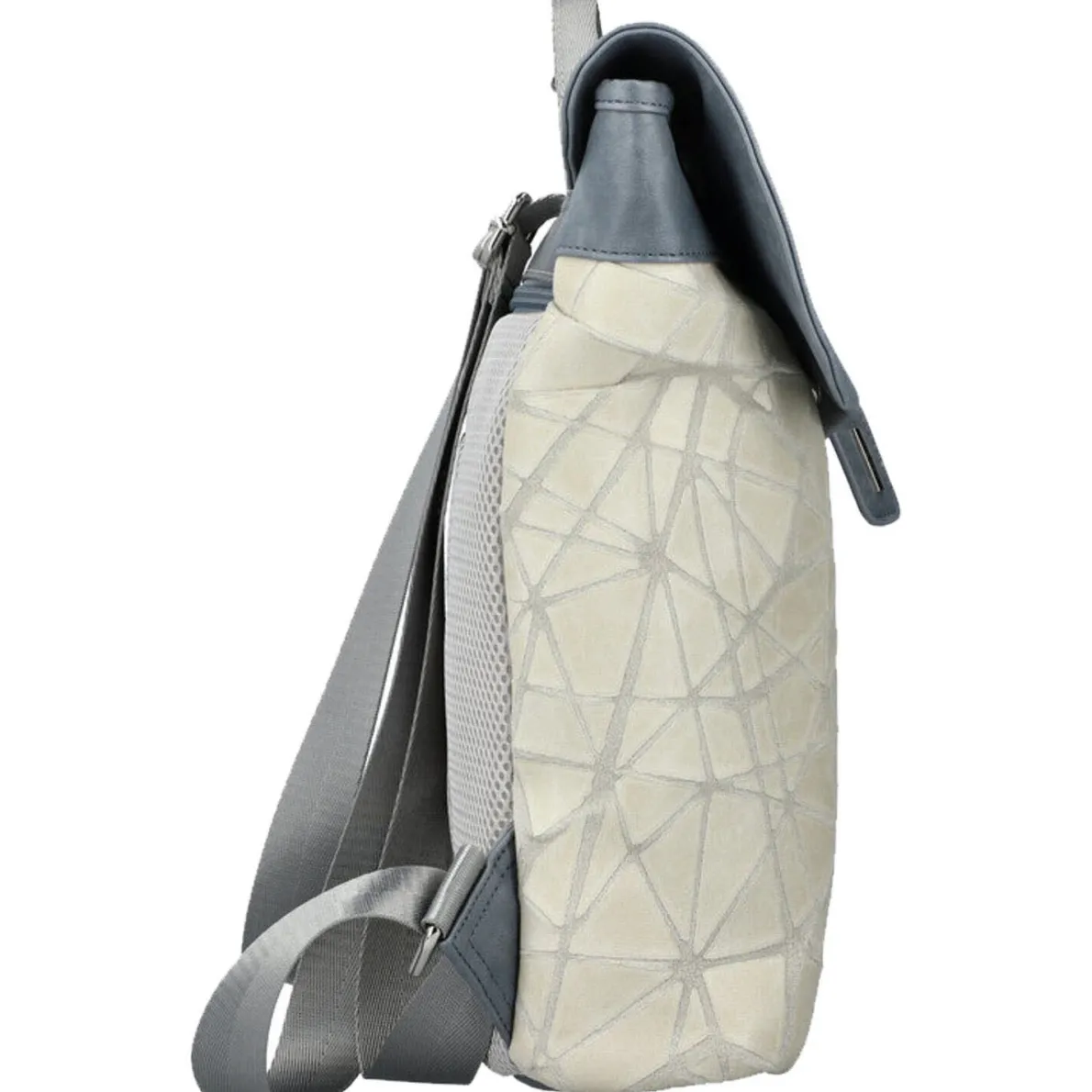 Der Umschlag in Nubukleder Optik und der Rucksack selbst mit einem Muster verziert, sind zusätzliche Hingucker.