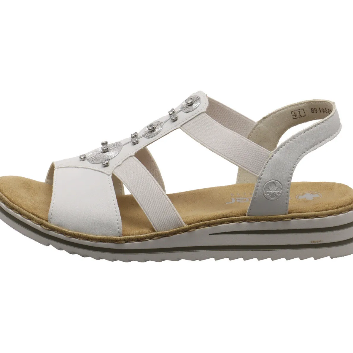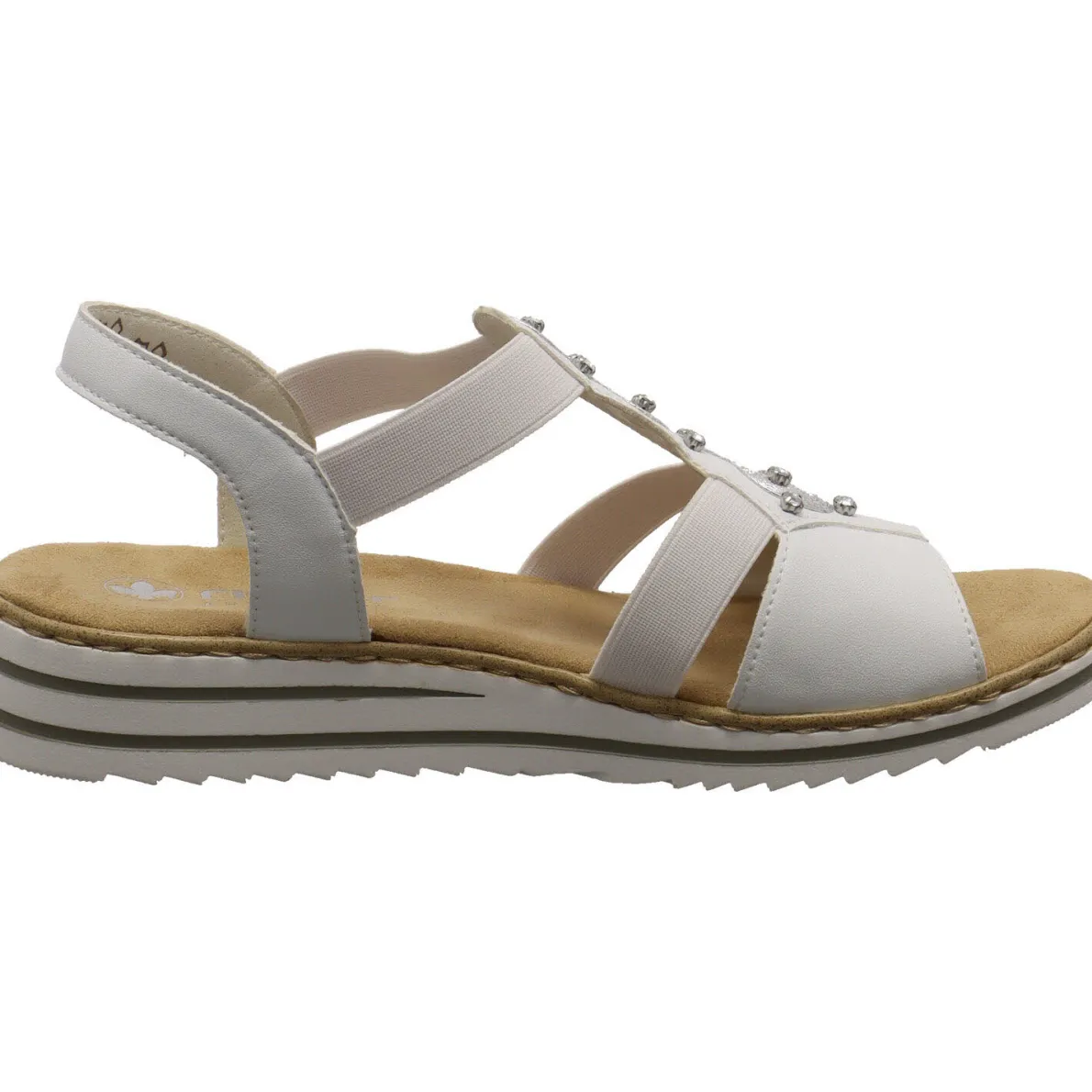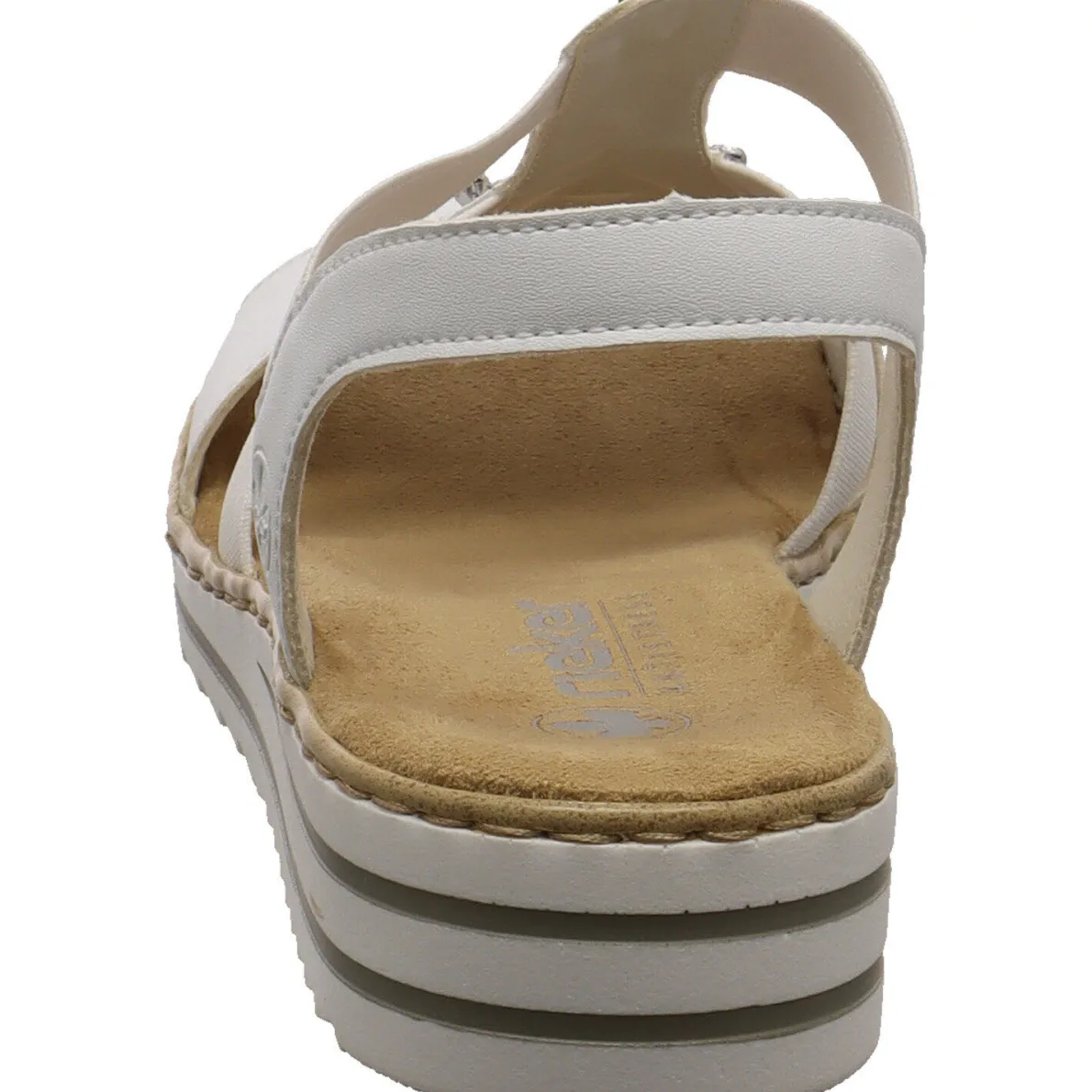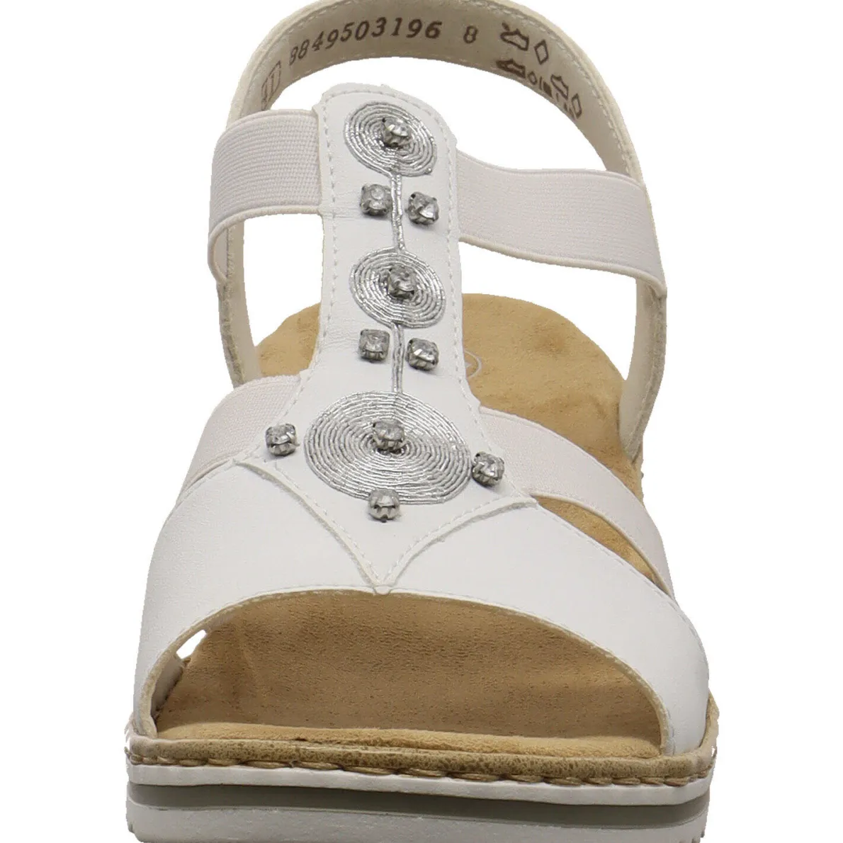Diese Damen Sandale in Weiß von Rieker ist eine klassische und zugleich glamouröse Begleitung für die heißen Tage des Jahres.