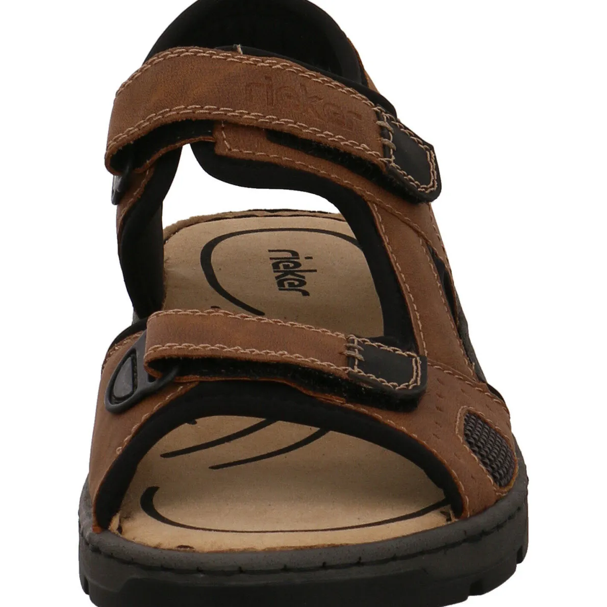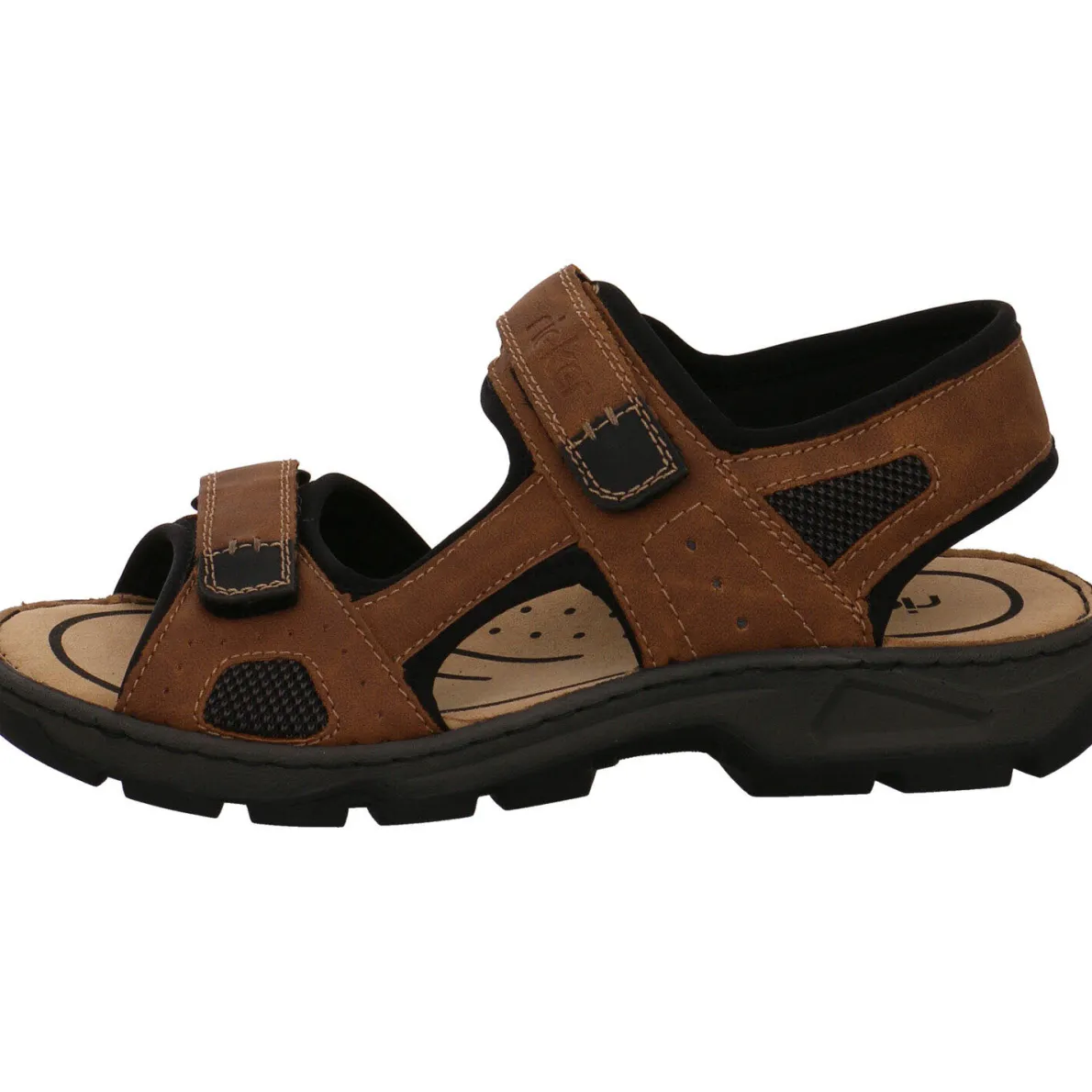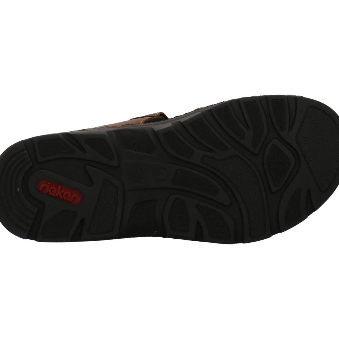 Diese Herren Sandale in Braun aus dem Hause Rieker wurde aus hochwertigem Kunstleder gefertigt, welches perfekt durch die Ziernähte in Beige unterstrichen wird.
