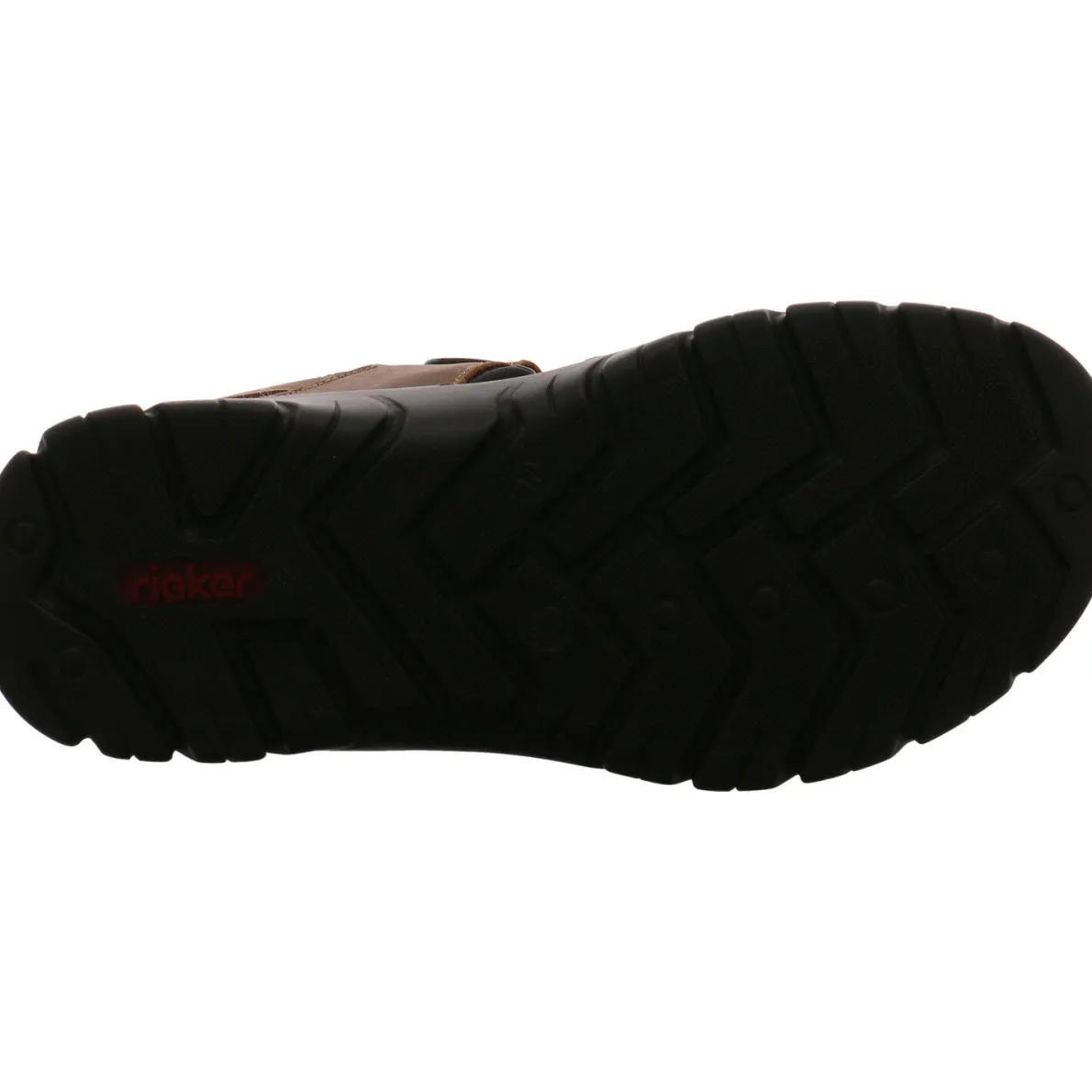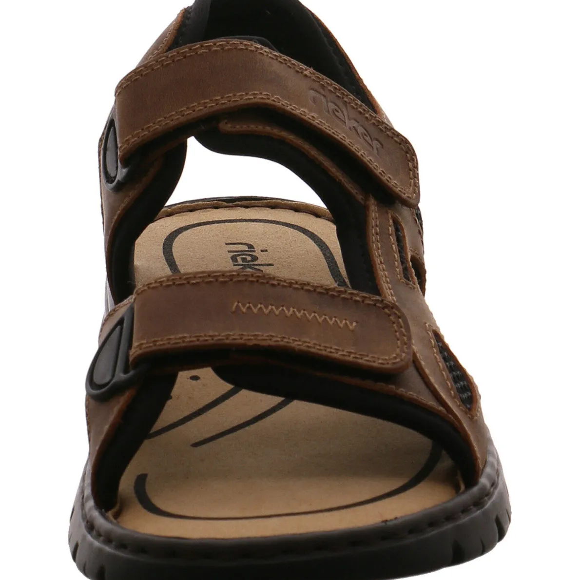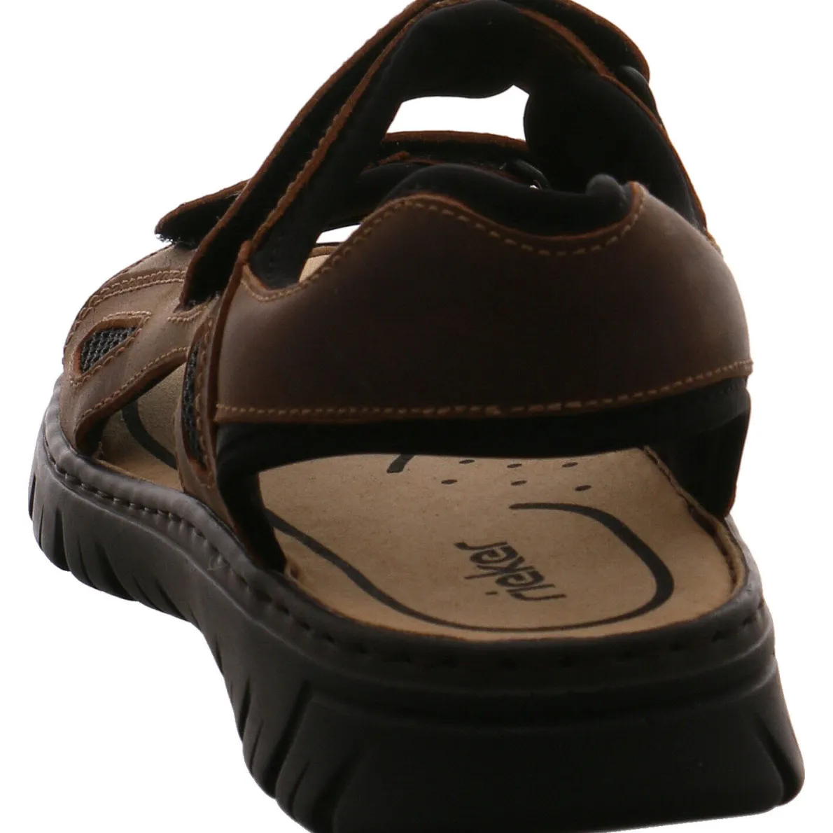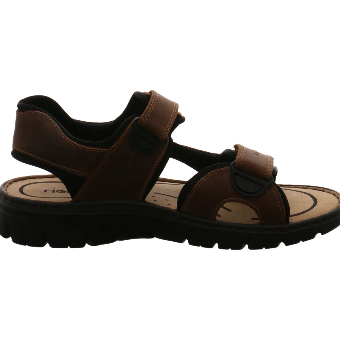 Diese Herren Sandale in Braun aus dem Hause Rieker wurde aus Echtleder gefertigt, welches perfekt durch doppelreihige Ziernähte unterstrichen wird.