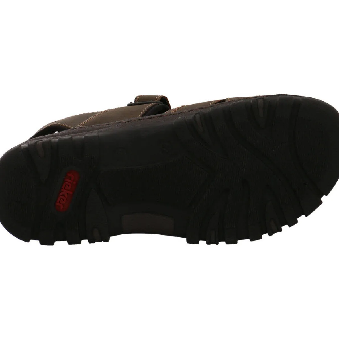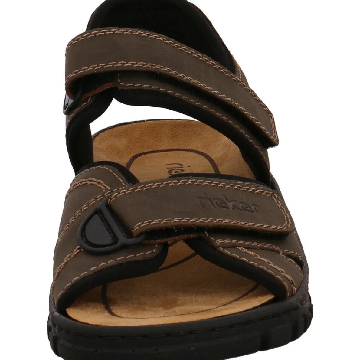 Diese Herren Sandale in Tabak Braun aus dem Hause Rieker wurde aus hochwertigem Kunstleder in Nubuk-Optik gefertigt, welches perfekt durch doppelreihige Ziernähte unterstrichen wird.