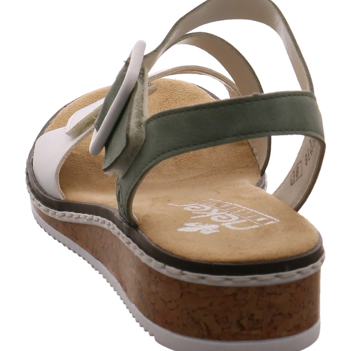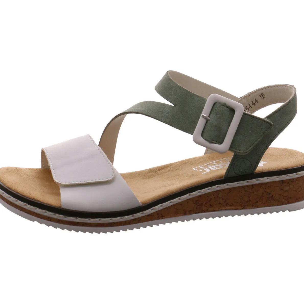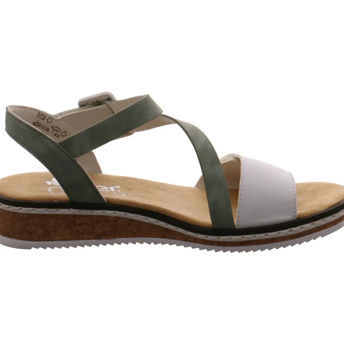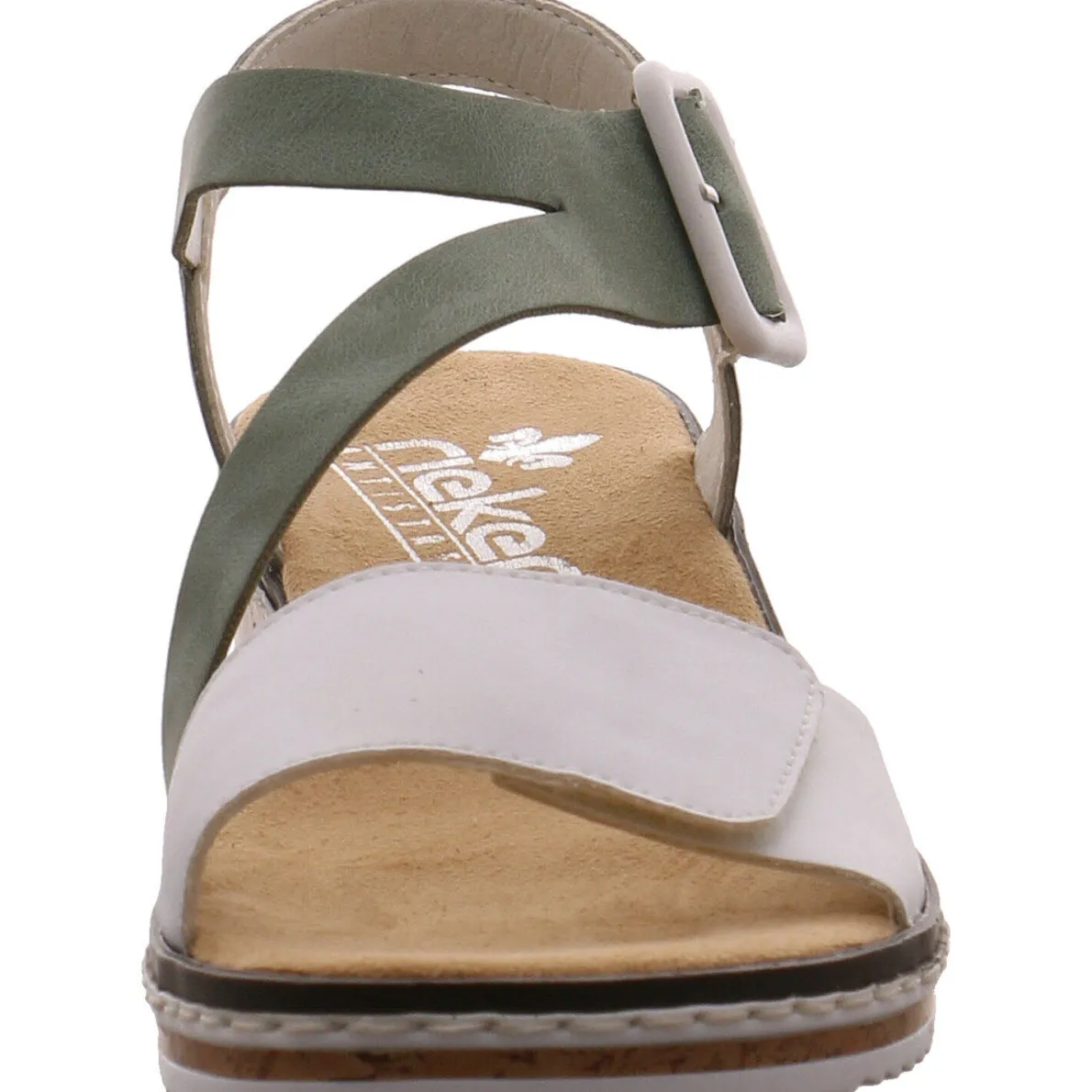 Sommerlich und ausgesprochen bequem überzeugt diese Damen Sandale aus dem Hause Rieker in der neuen Saison.