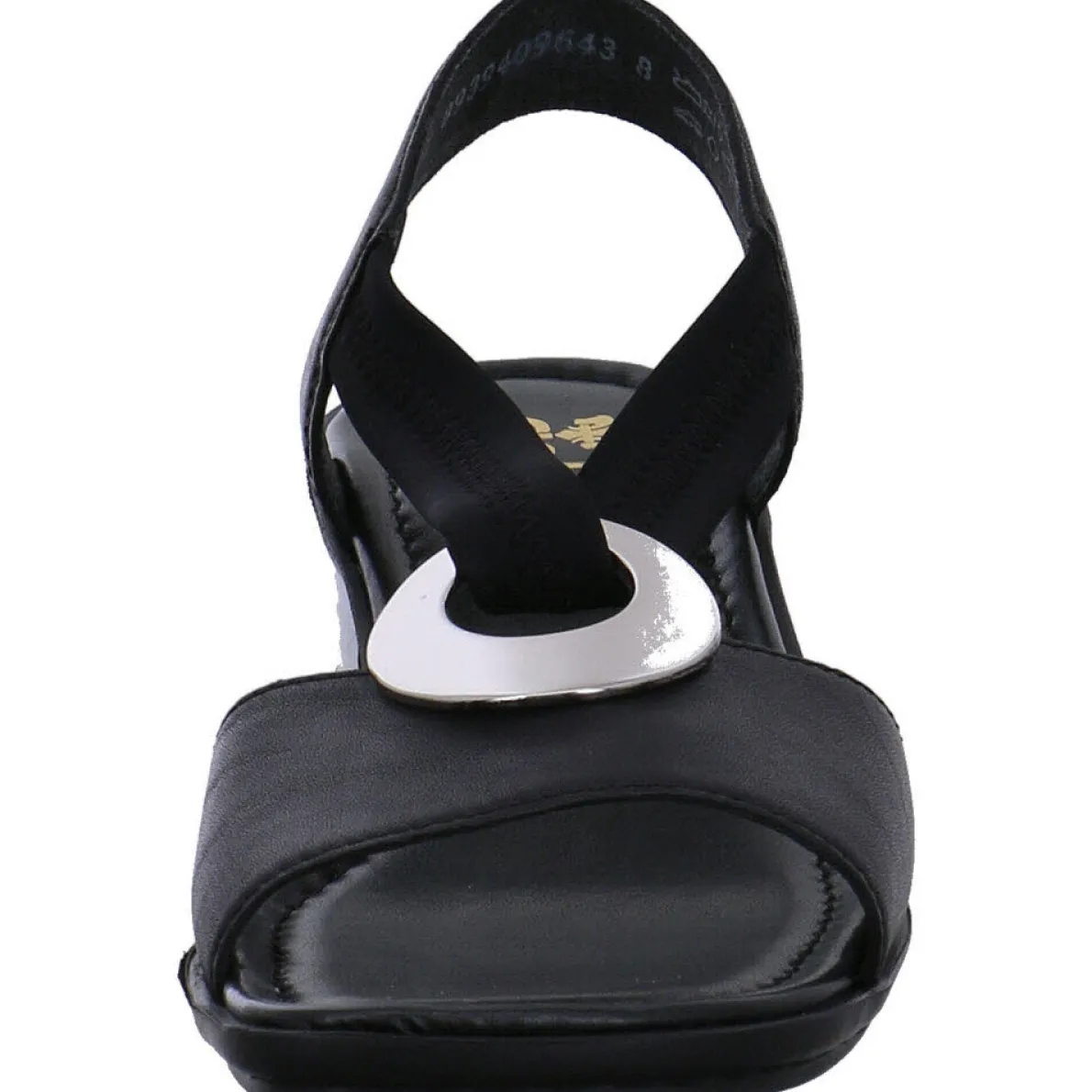 Schlichte Eleganz bringt diese Damen Sandalette von Rieker mit.
