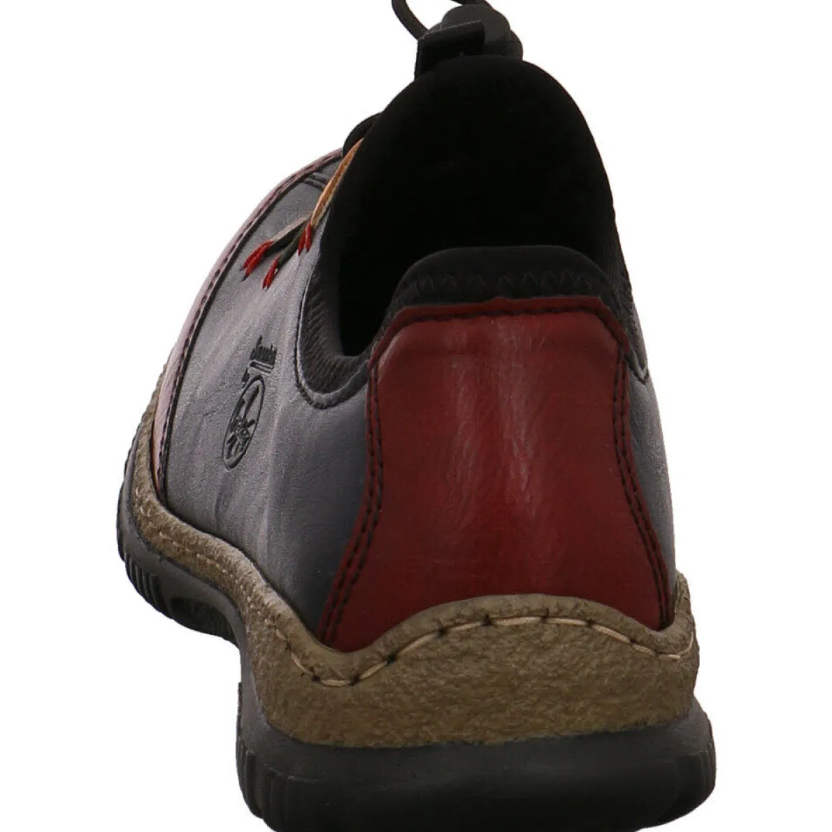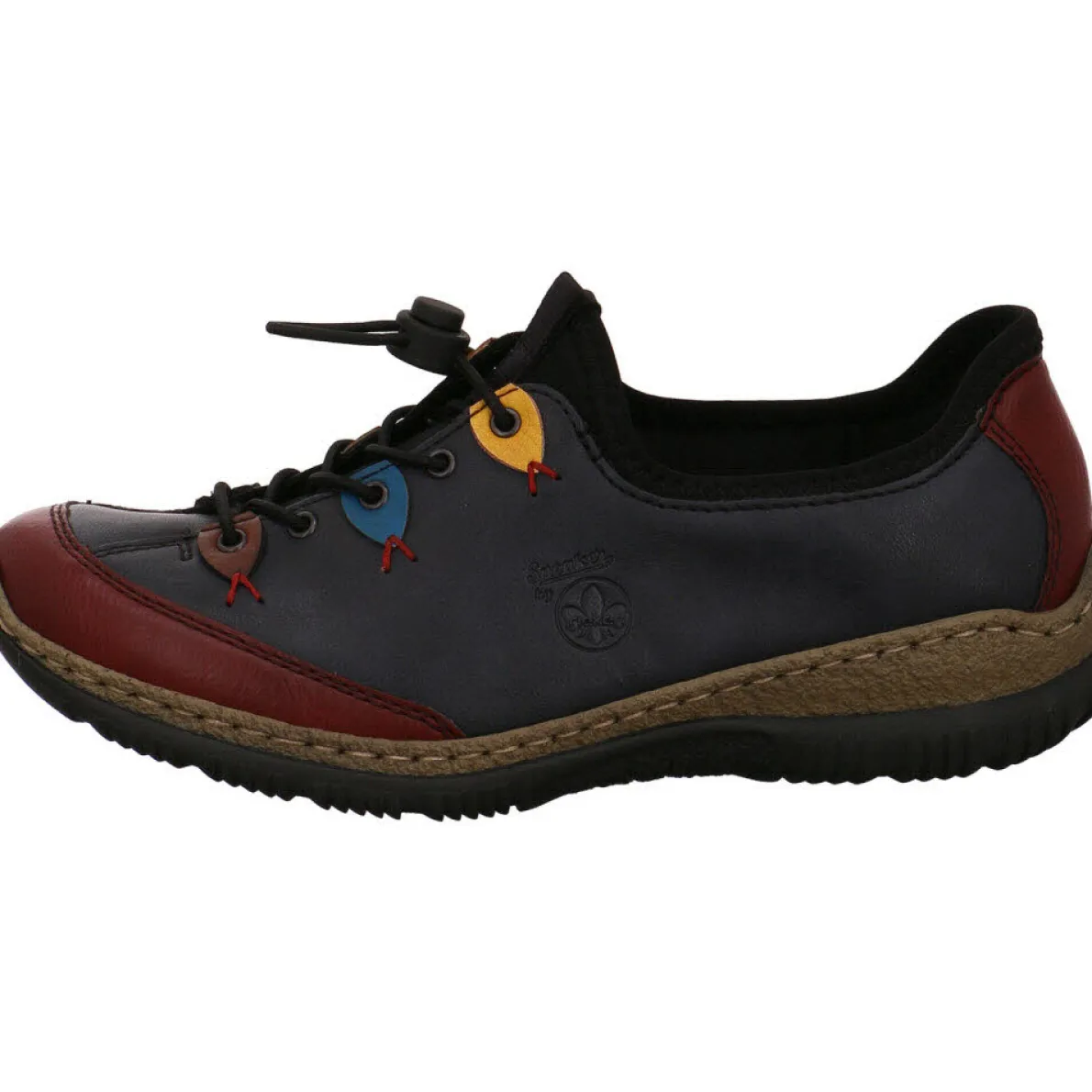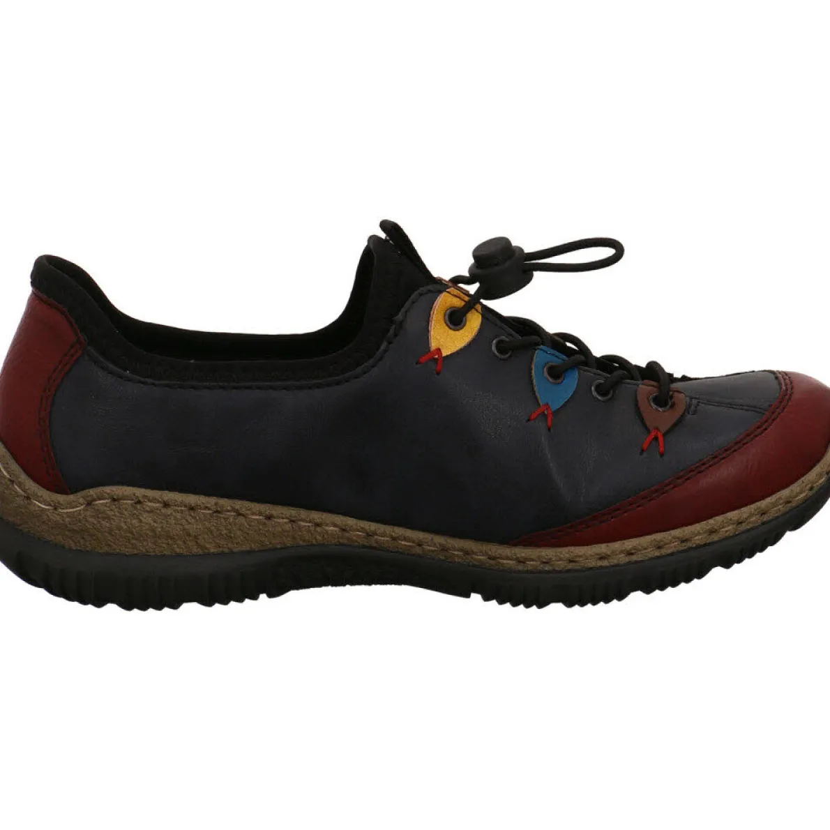 Im außergewöhnlichen Look überzeugt dieser Damen Schnürschuh aus dem Hause Rieker.