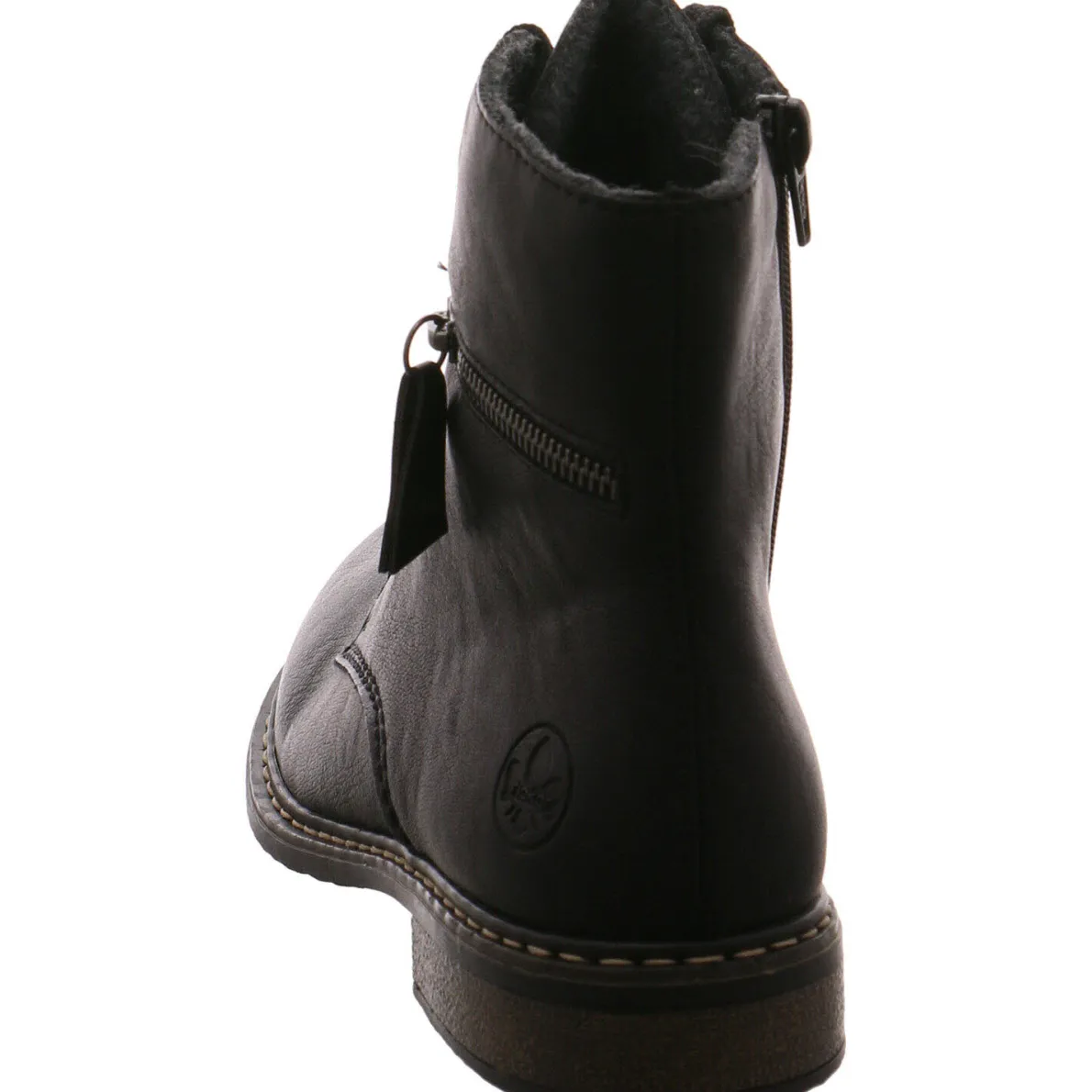 Gefertigt aus authentisch genarbten Kunstleder in Schwarz ist sie am Schaft mit einem Zierzipper versehen.