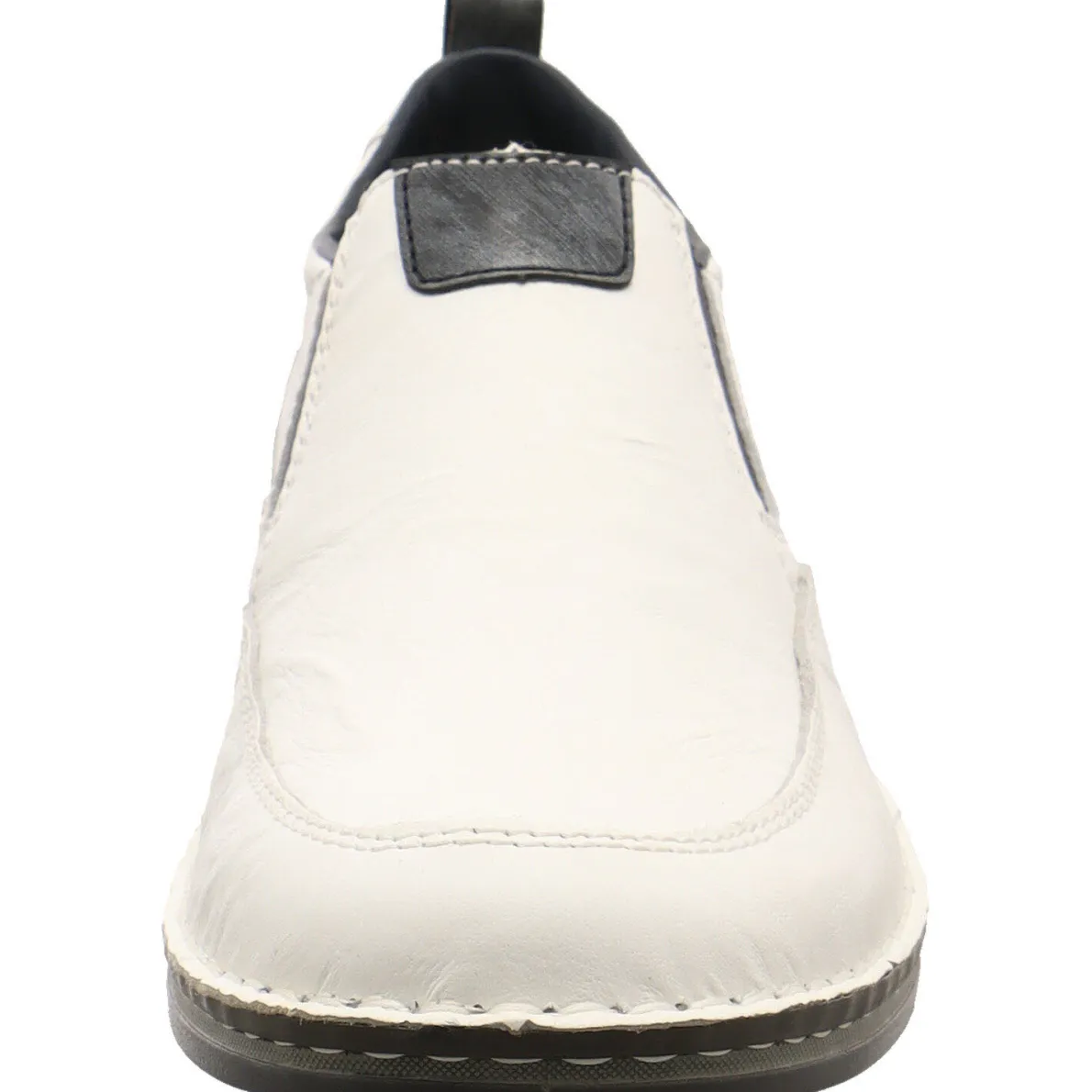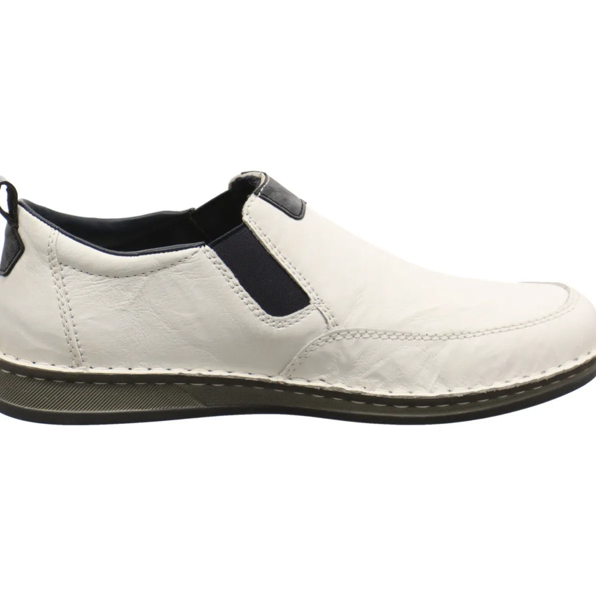 Ein toller Herren Slipper aus hochwertigem Leder ist dieses Modell von Rieker. Das Obermaterial wird durch die Ziernähte in Weiß und die Einsätze in dunklem Blau perfekt unterstrichen.Tolle Details sind die Prägung an der Seite als Rieker Markenaufschrift und das Band am Schaft für den leichten Einstieg. Zudem sorgt das weich gepolsterte Innenleben für maximalen Komfort.