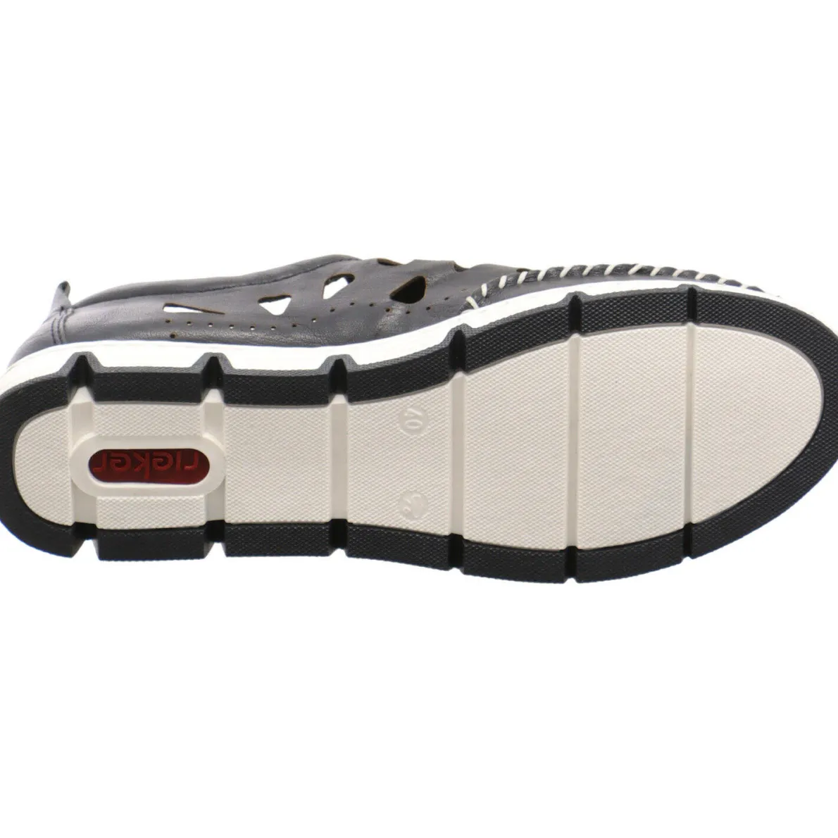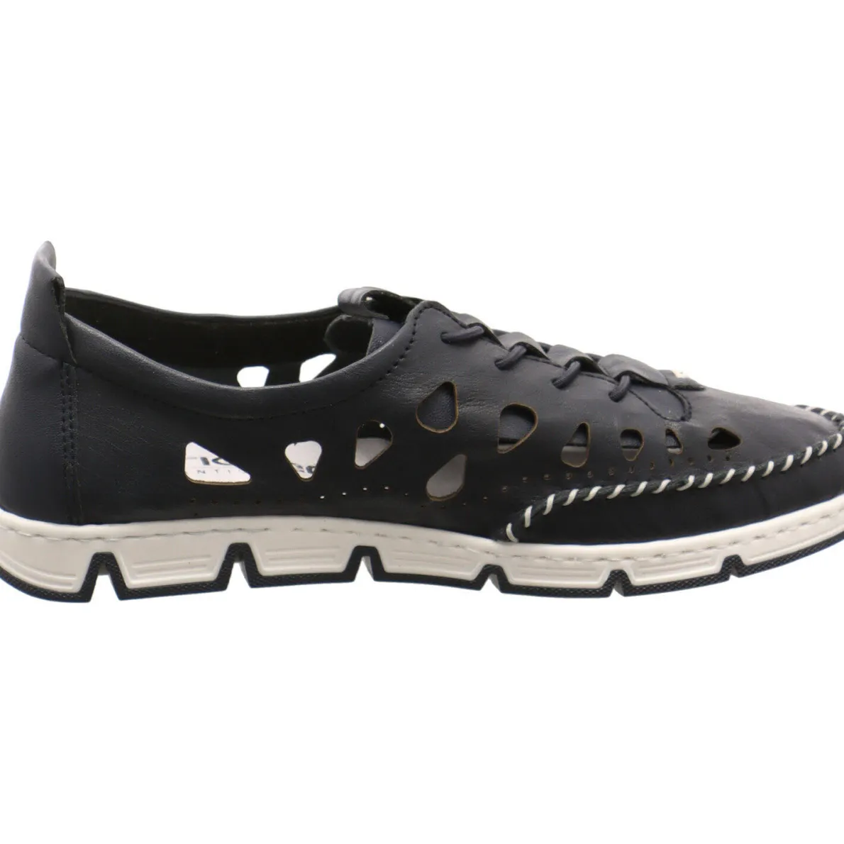 Die seitlichen Cutouts bieten den Füßen eine optimale Luftzirkulation. Die Rieker Antistress Innenausstattung aus Leder ist perforiert und super weich, daher sehr bequem und für jeden Tag geeignet. Die elastische Zierschnürung verleiht ihm die Optik eines Schnürschuh.