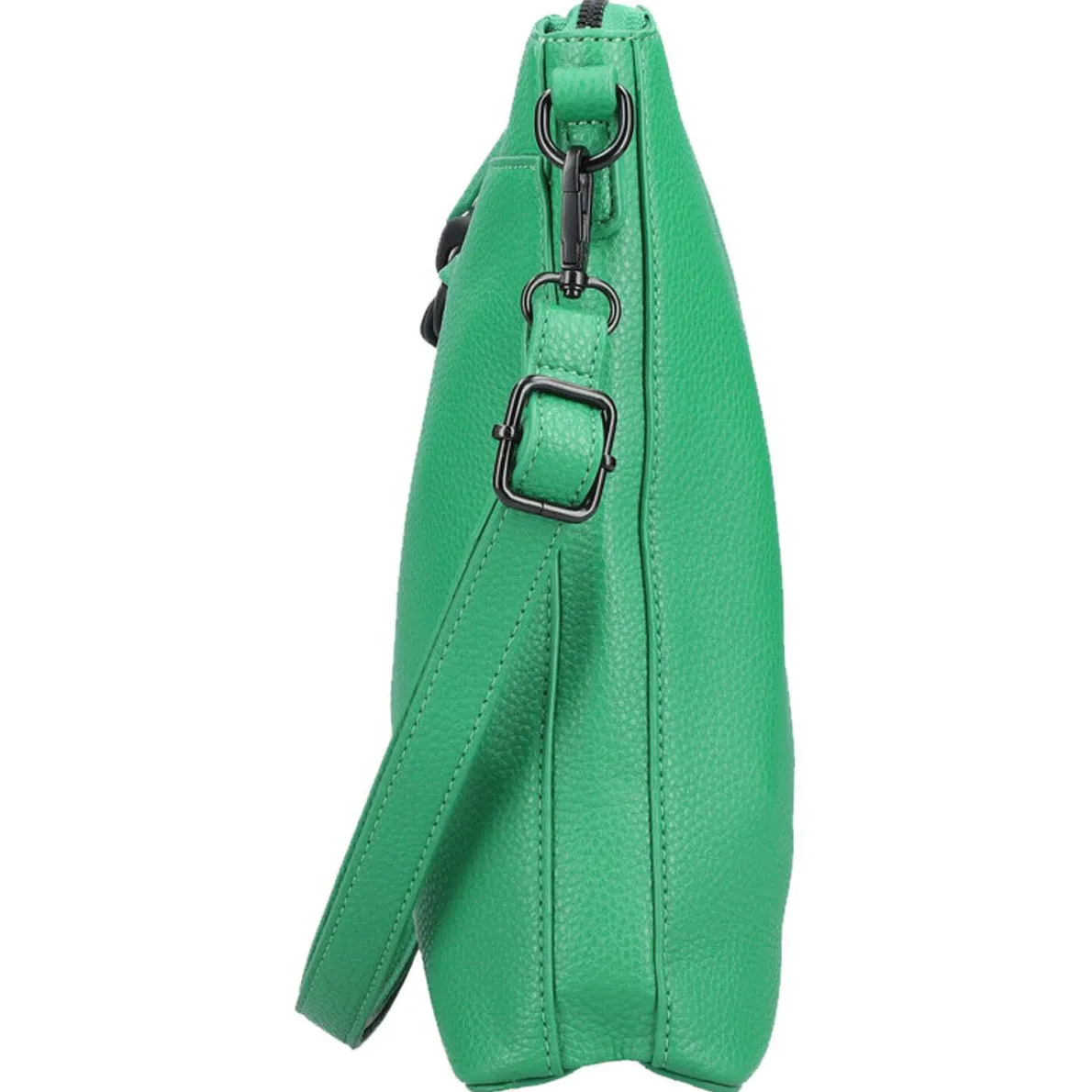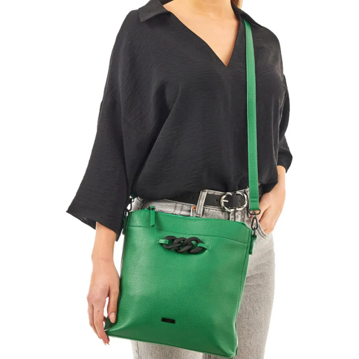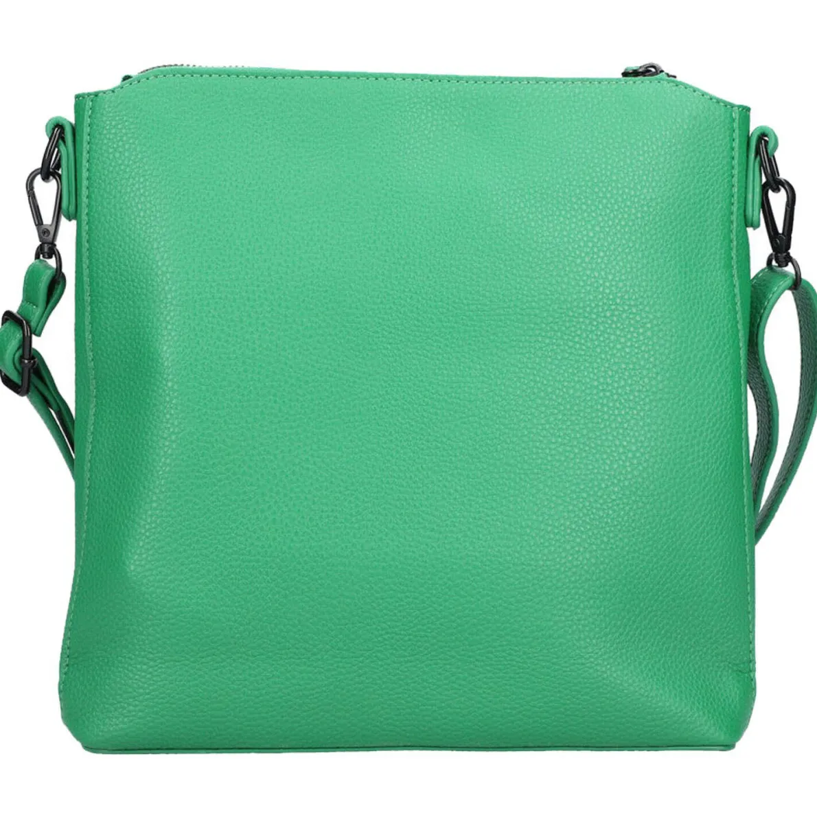 Diese schicke Umhängetasche für Damen von Rieker überzeugt durch ihr auffallendes Design. Gefertigt aus hochwertig verarbeitetem Kunstleder in leichtendem Grün ist sie ein Must-have für die kommende Saison. Ein besonderer Hingucker ist die Applikation in Schwarz auf der Vorderseite.