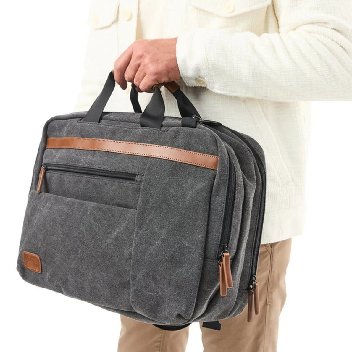 Gefertigt aus Polyurethan in Grau passt die Tasche zu jedem Outfit und begleitet dich stilvoll ins Büro, auf Reisen oder im Alltag. Das praktische und geräumige Format dieser Tasche ermöglicht auch den sicheren Transport eines Laptops. Die Tasche bietet vielseitige Tragemöglichkeiten: als Rucksack durch die an der Rückseite angebrachten 2 Schultergurte oder als Umhängetasche durch den verstellbar- und annehmbaren Tragegurt. An der Rückseite befindet sich außerdem eine Trolley Aufsteckfunktion.