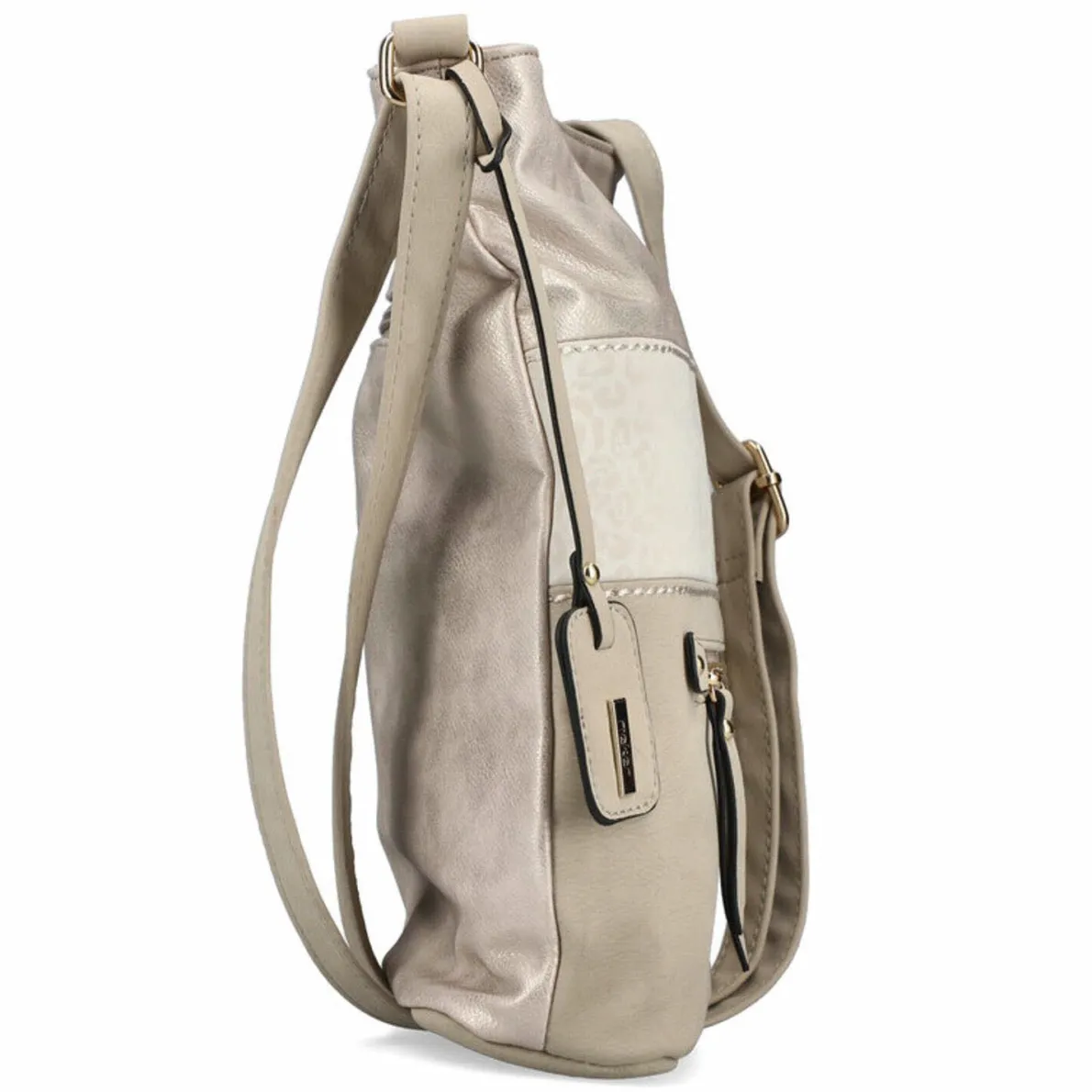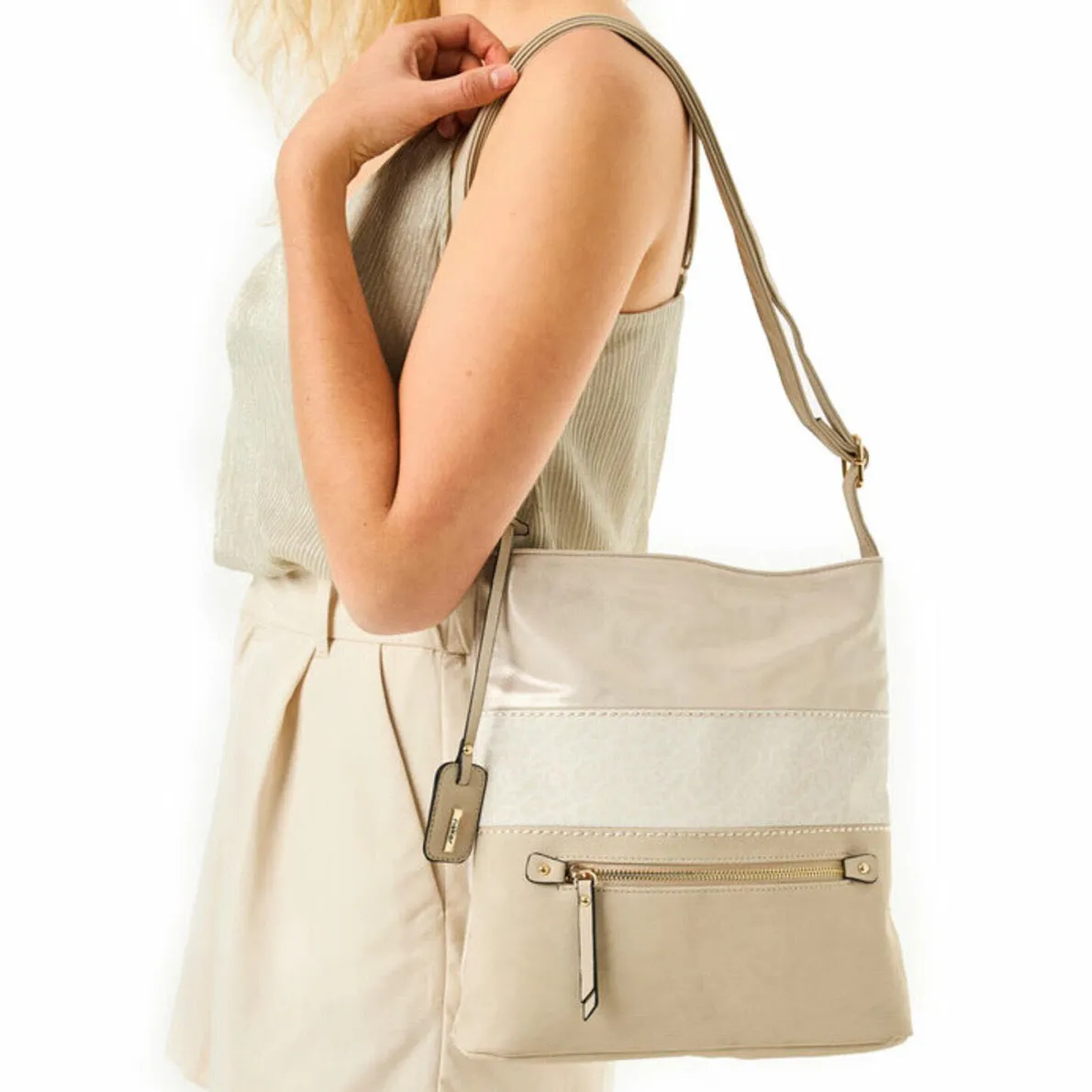 Gefertigt aus trendigem und pflegeleichtem Kunstleder in Beige und mit Steppnähten und einem Colour Blocking Look versehen, wird die Handtasche zum absoluten Lieblingsstück.