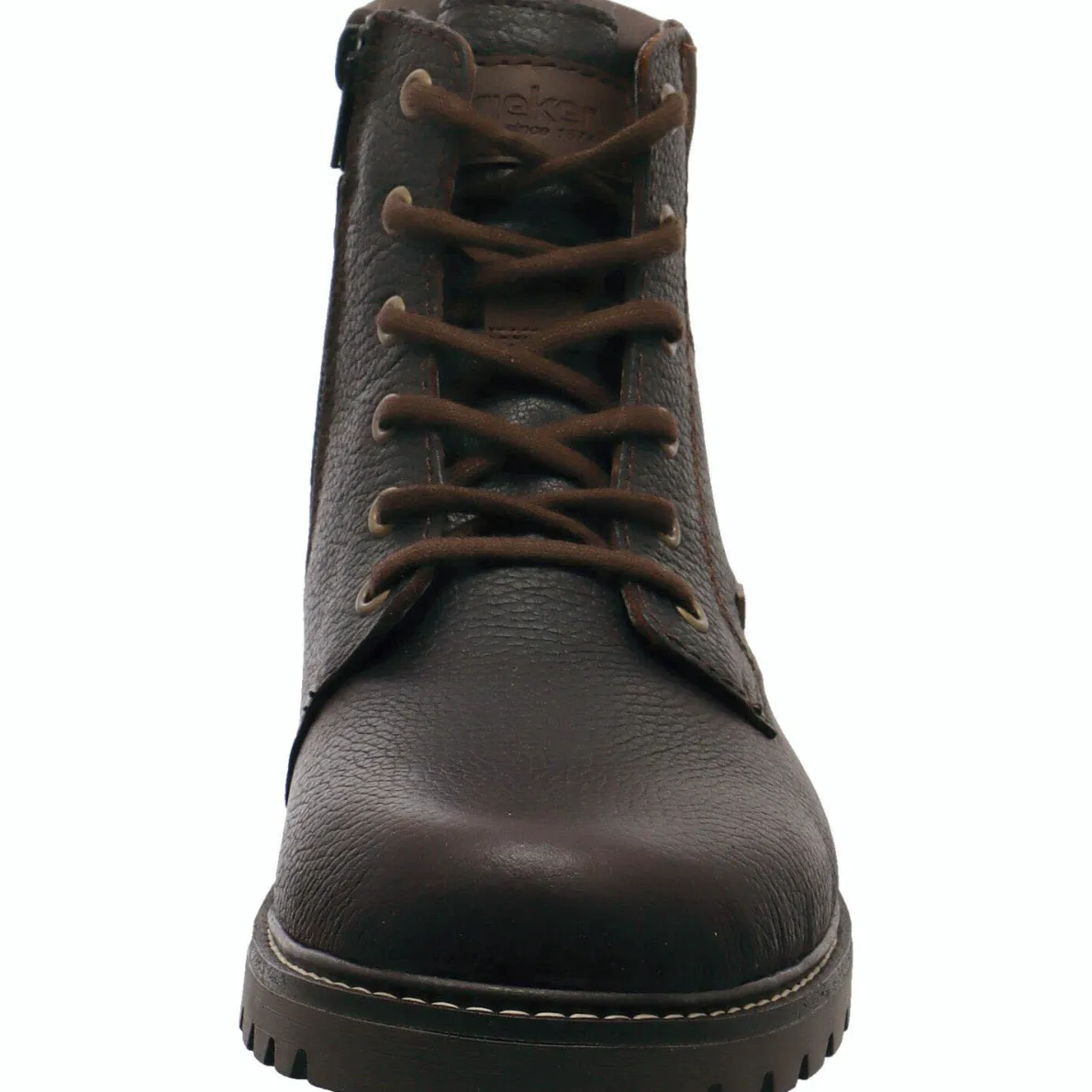 Dieser Rieker Herren Winterstiefel überzeugt durch sein sportliches Design, das durch das grob genarbte Echtleder in Braun perfekt in Szene gesetzt wird.