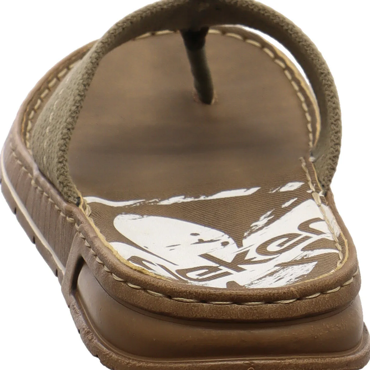 Dieser angesagte Zehentrenner in Olive Grün von Rieker überzeugt in erster Linie durch sein modernes Design.