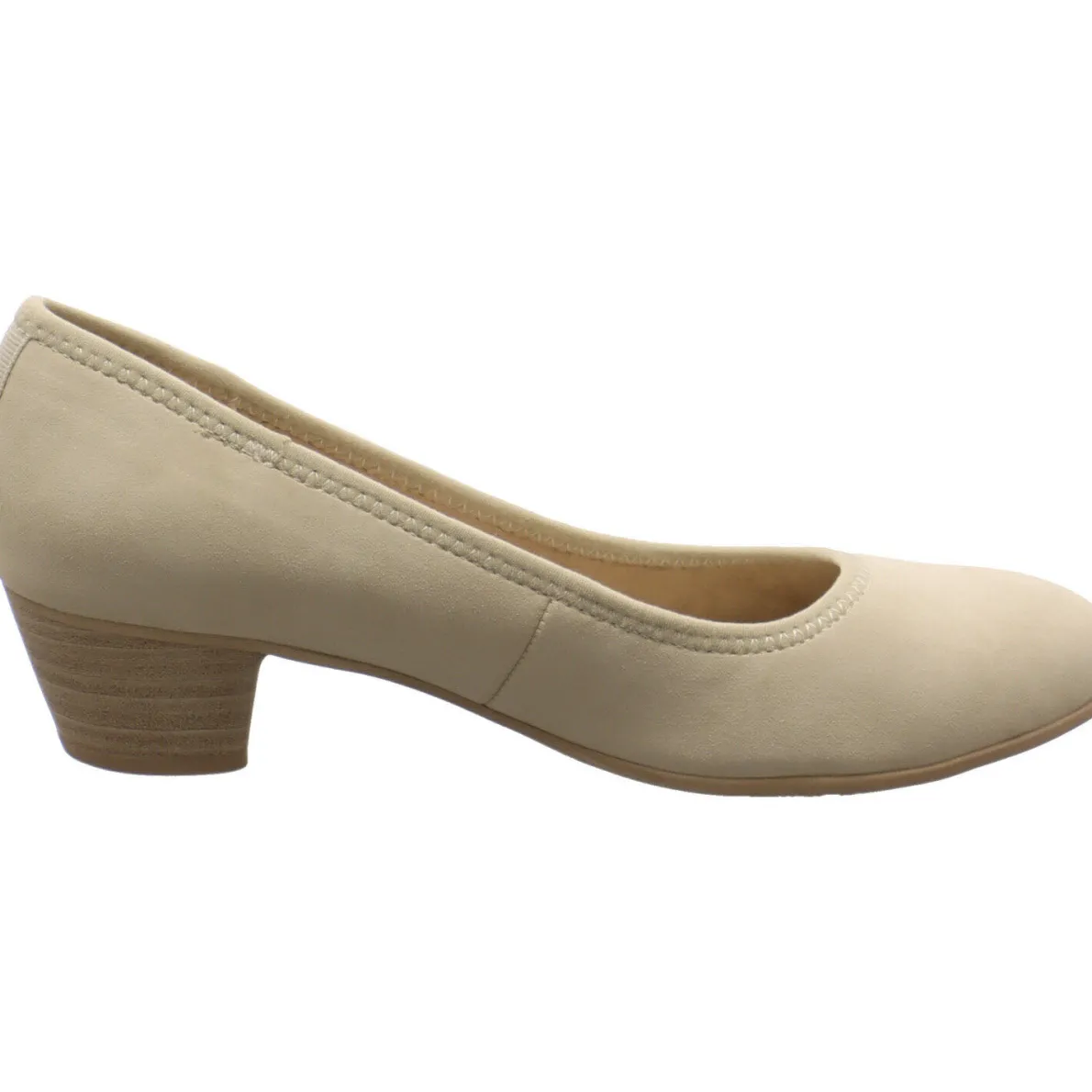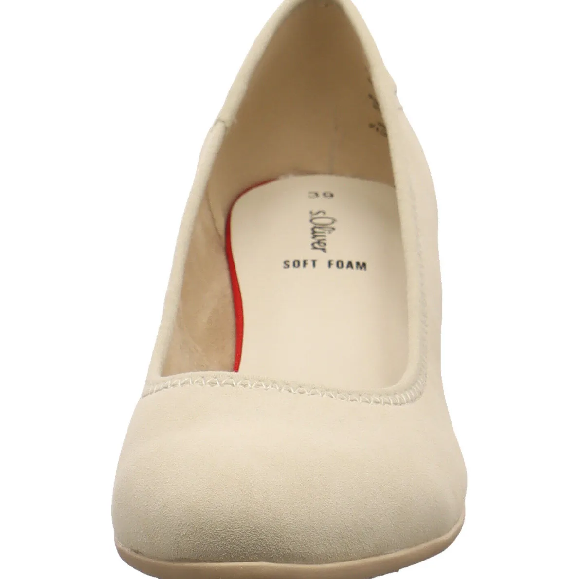 Dieser Casual Damen Pumps von s.Oliver wirkt klassisch und sportlich zugleich. Das Obermaterial iwurde aus hochwertigem Kunstleder in Cream Beige gefertigt. Das Design wird durch Ziernähte an der Ferse und einer Allover Kreuz Prägung aufgelockert. Das Labelbranding unterstreicht zusätzlich den sportlichen Look des Pumps. Die Innensohle ist mit dem weich gepolsterten Soft Foam Fußbett ausgestattet, welches sich ideal an die Fußform anpasst. Die Gummilaufsohle ist leicht profiliert und bietet einen guten Halt. Der Trichterabsatz im angesagten Schichtlook hat eine bequeme Höhe. Ein schöner Schuh, der super zur Lieblingsjeans oder Kleid passt.