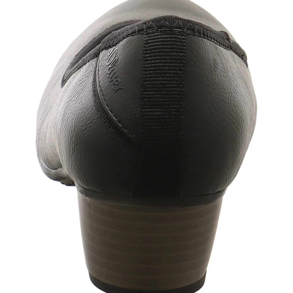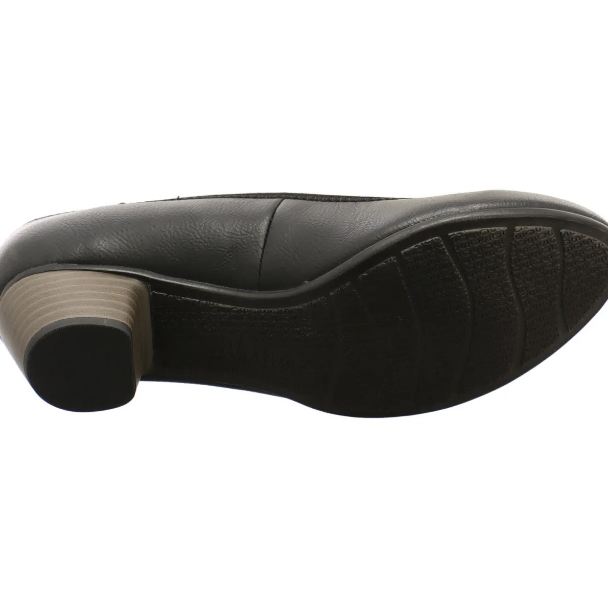 Dieser Casual Damen Pumps von s.Oliver wirkt klassisch und sportlich zugleich. Das Obermaterial ist aus hochwertigem Kunstleder in Schwarz gefertigt. Das Design wird durch Ziernähte an der Ferse aufgelockert. Das Labelbrandig unterstreicht zusätzlich den sportlichen Look des Pumps. Die Innensohle ist mit dem weich gepolsterten Soft Foam Fußbett ausgestattet, welches sich ideal an deine Fußform anpasst. Die Gummilaufsohle ist leicht profiliert und bietet einen guten Halt. Der Trichterabsatz im angesagten Schichtlook hat eine bequeme Höhe. Ein schöner Schuh, der super zur Lieblingsjeans oder Kleid passt.