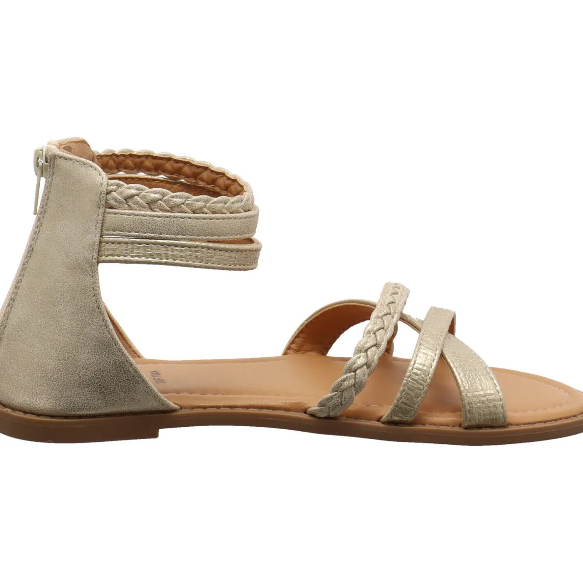 Perfekt für den Sommer ist diese tolle Kinder Sandale aus dem Hause s.Oliver. Sie wurde aus Echtleder in der Trendfarbe Beige gefertigt und schimmert toll. Die Riemen sind stilvoll gesetzt und teilweise geflochten und die geschlossene Ferse und der Riemen am Knöchel geben zusätzlichen Halt. Für einen leichten Einstieg sorgt der Reißverschluss an der Ferse.