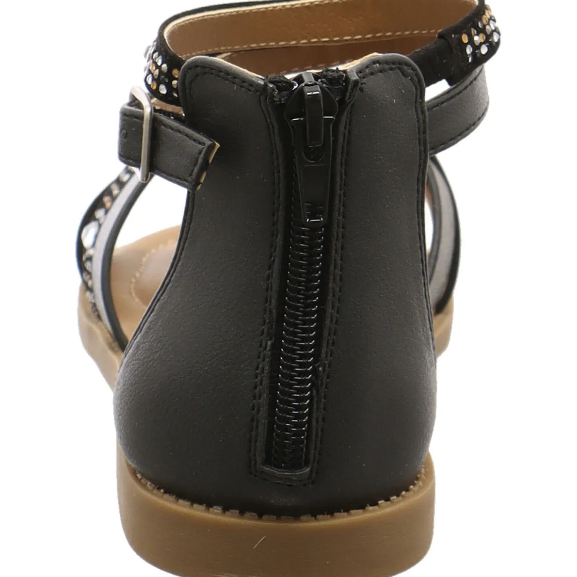 Diese tolle Kinder Sandale für Mädchen aus dem Hause s.Oliver wurde aus weichem Kunstleder in Schwarz gefertigt. Der Schuh überzeugt durch schlichtes Design und ist auf dem Blatt mit kleinen Glitzersteinen und Sternen verziert, was ihn zum echten Hingucker macht