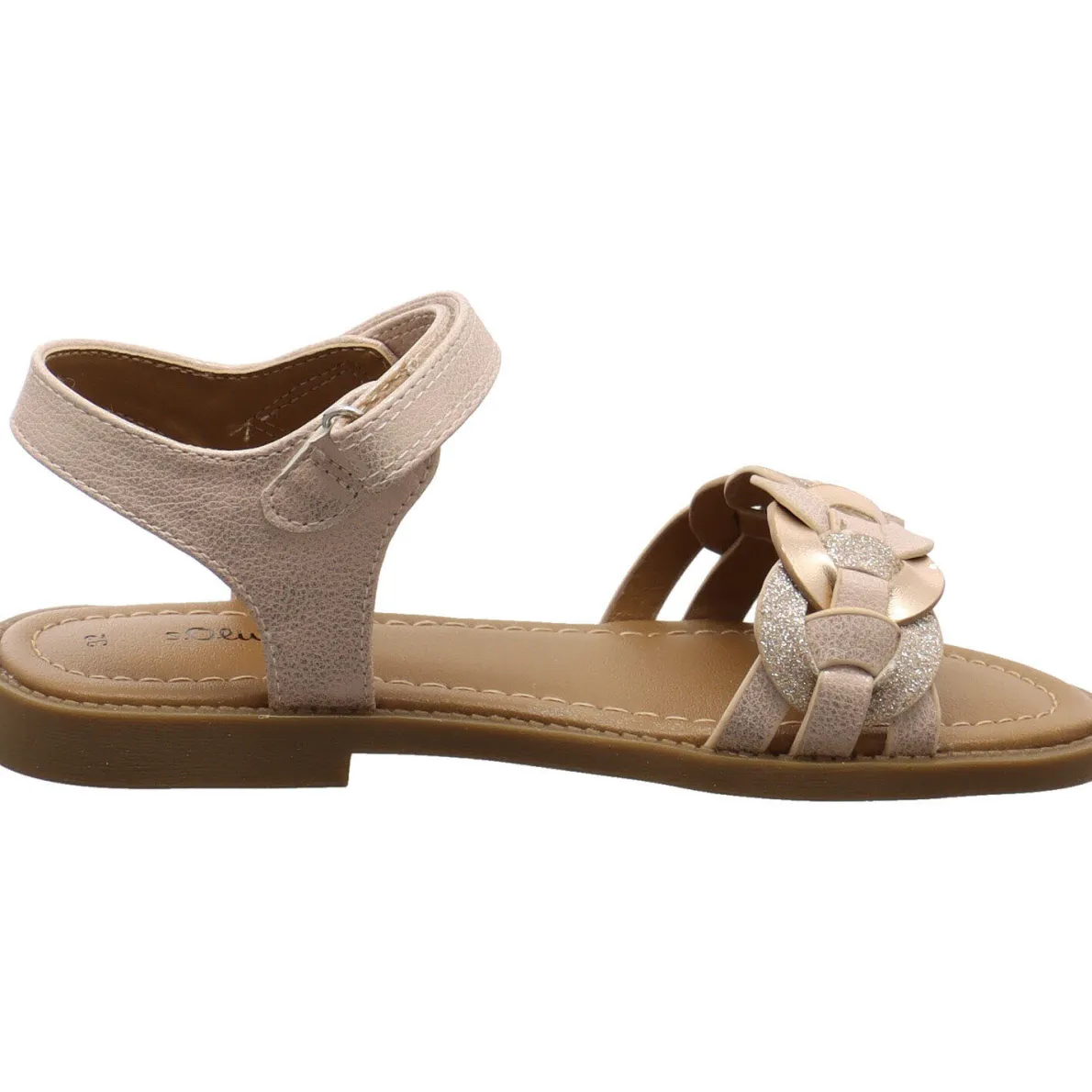 Diese tolle Kinder Sandale für Mädchen aus dem Hause s.Oliver wurde aus weichem Kunstleder in schimmerndem Rosa gefertigt. Der Schuh überzeugt durch schlichtes, aber dennoch schickes Design. Der vordere Riemen ist ineinander geflochten und mit Glitzer- und Schimmer Akzenten versehen, was ihn zum echten Hingucker macht