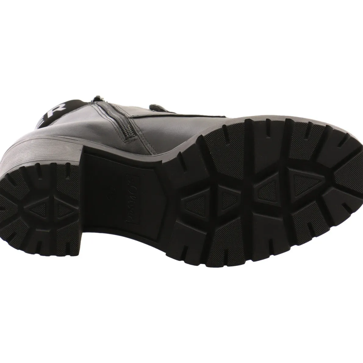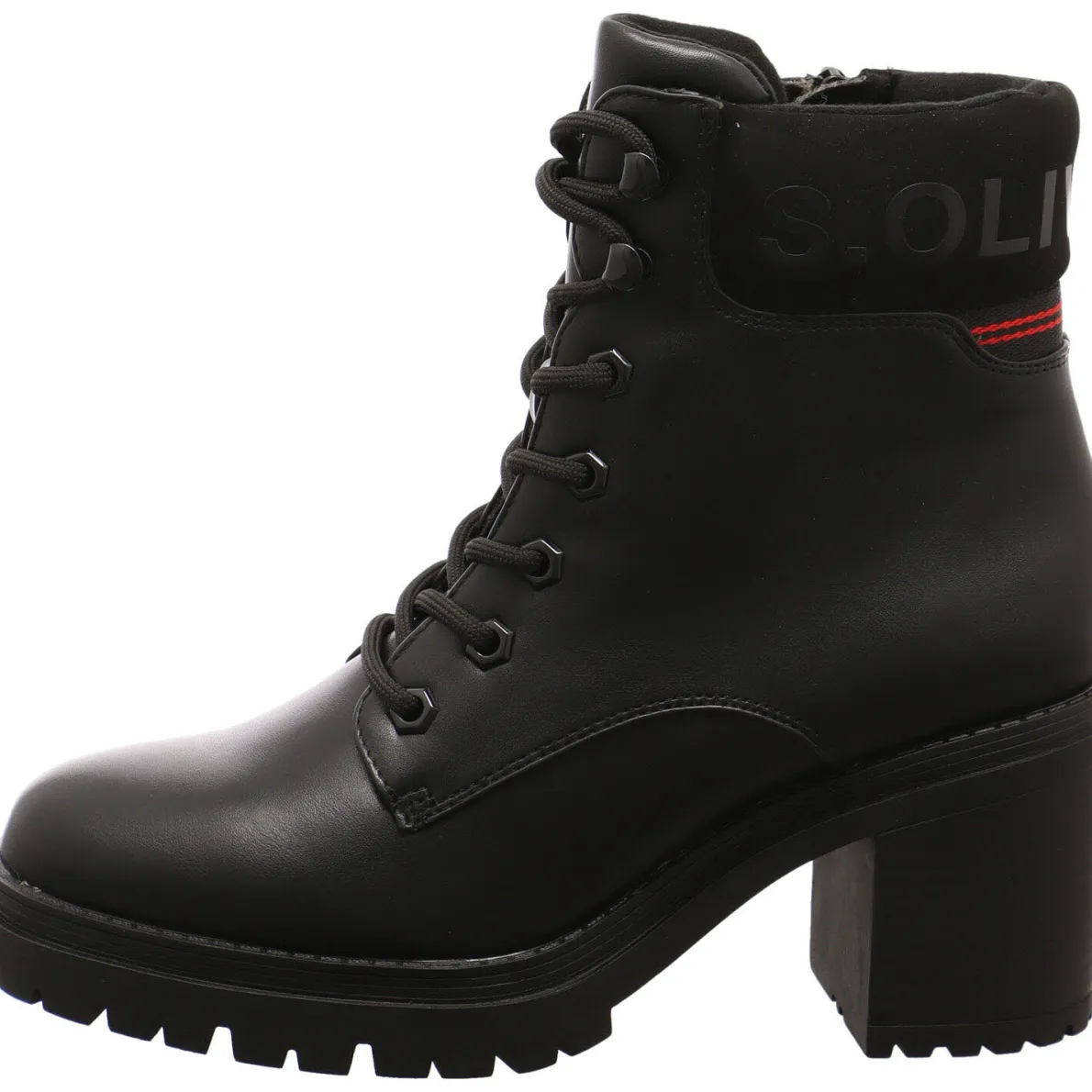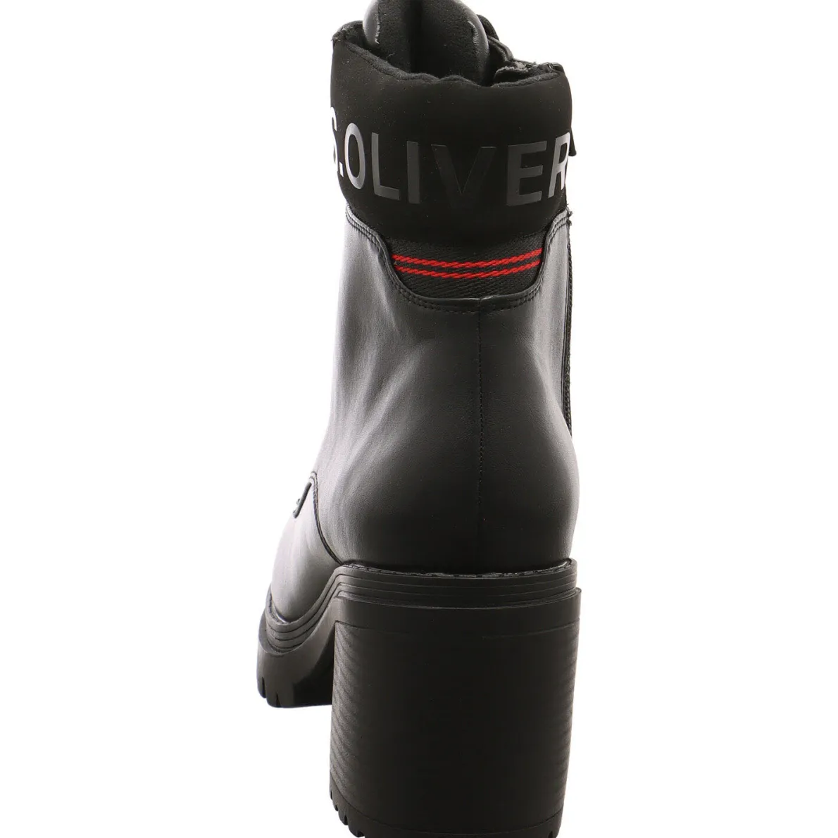 Sie wurde aus Kunstleder in Schwarz gefertigt und ist voll vegan, dabei ist der Schaft angenehm weich gepolstert und begeistert durch seine weiche Haptik und das s.Oliver Markenlogo als Print.