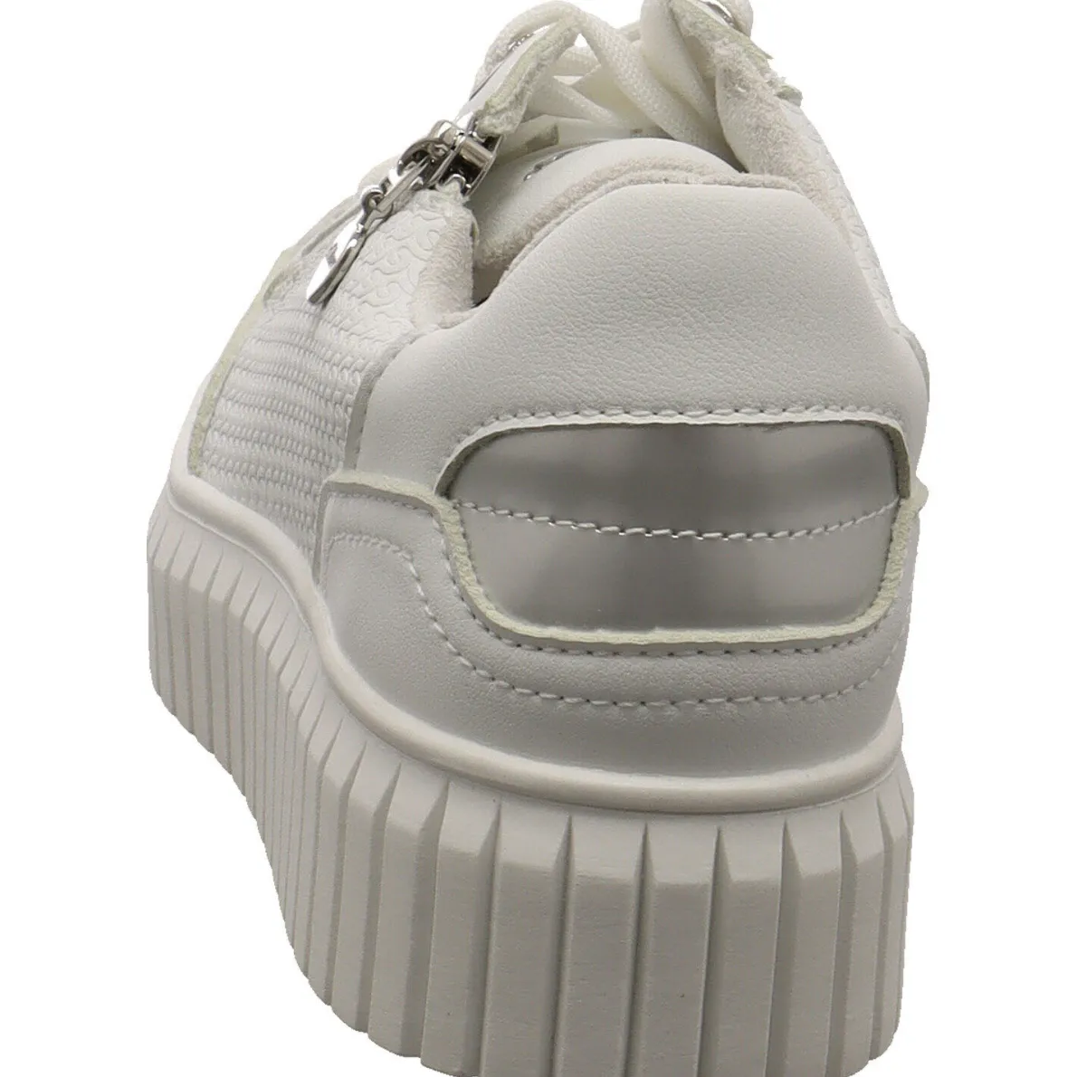 Gefertigt aus Kunstleder in Weiß, hat er an der Seite eine individuelle Prägung und ist zusätzlich mit Farbakzenten in Silber versehen. Der Schaft ist angenehm weich gepolstert und mit dem seitlichen Reißverschluss ist der Einstieg ganz einfach. Mit der Schnürung kannst du ihn optimal an den Fuß anpassen. Die Innensohle ist angenehm weich und als Wechselfußbett gearbeitet. So können auch eigene Einlagen verwendet werden.