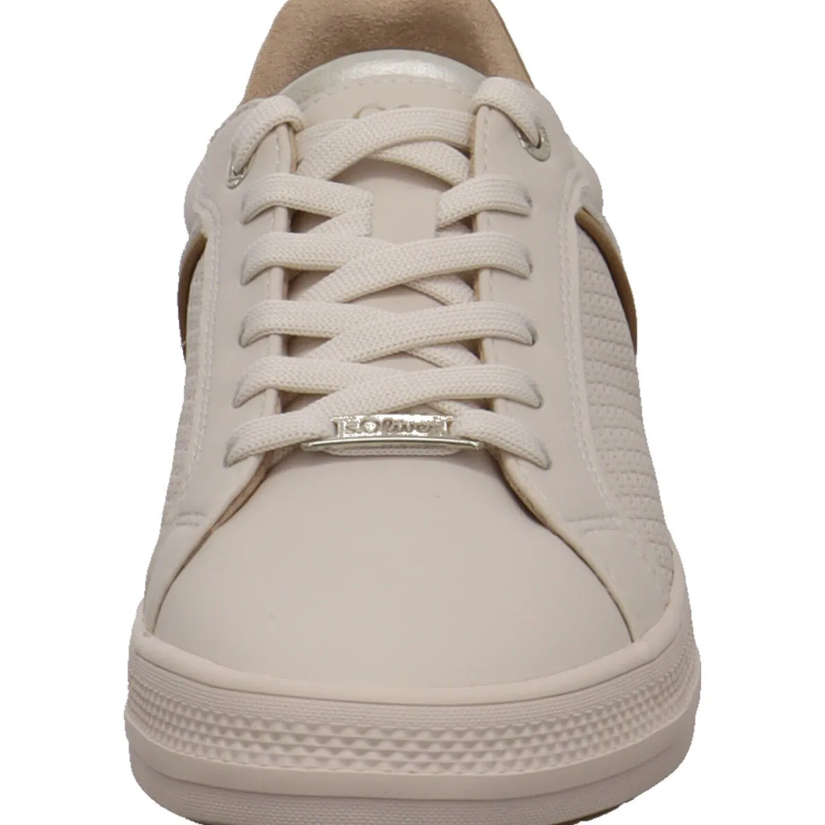 Gefertigt aus Kunstleder in Beige hat er an der Seite eine individuelle Prägung und ist zusätzlich mit Farbakzenten in Braun versehen. Der Schaft ist angenehm weich gepolstert. Mit der Schnürung kannst du den Schuh optimal an den Fuß anpassen. Die Innensohle ist angenehm weich mit einem Soft Foam Schaum gepolstert.