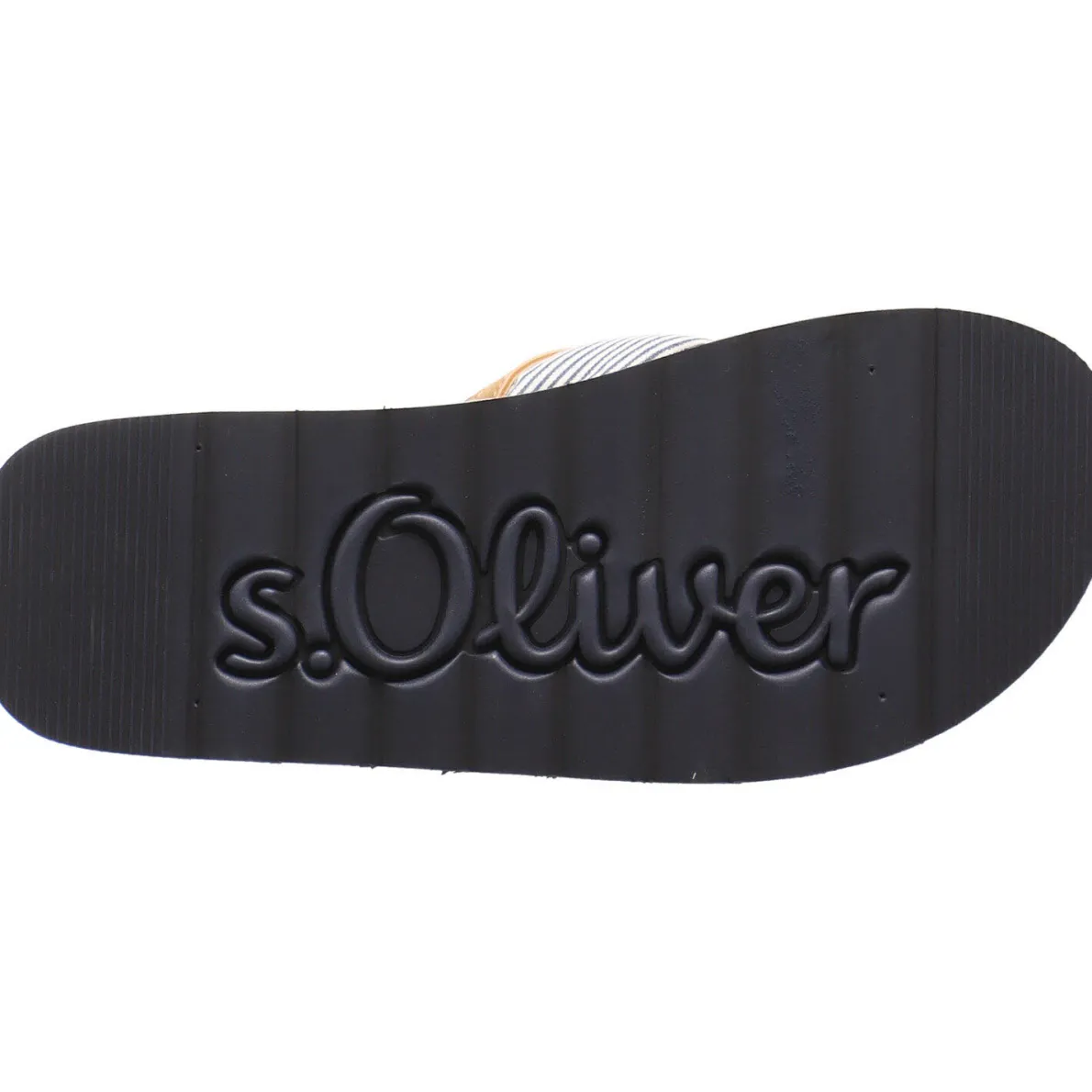 Diese individuell gestaltete Damen Zehentrenner Pantolette aus Kunstleder und Textil von s.Oliver ist ein Must Have für den kommenden Sommer.