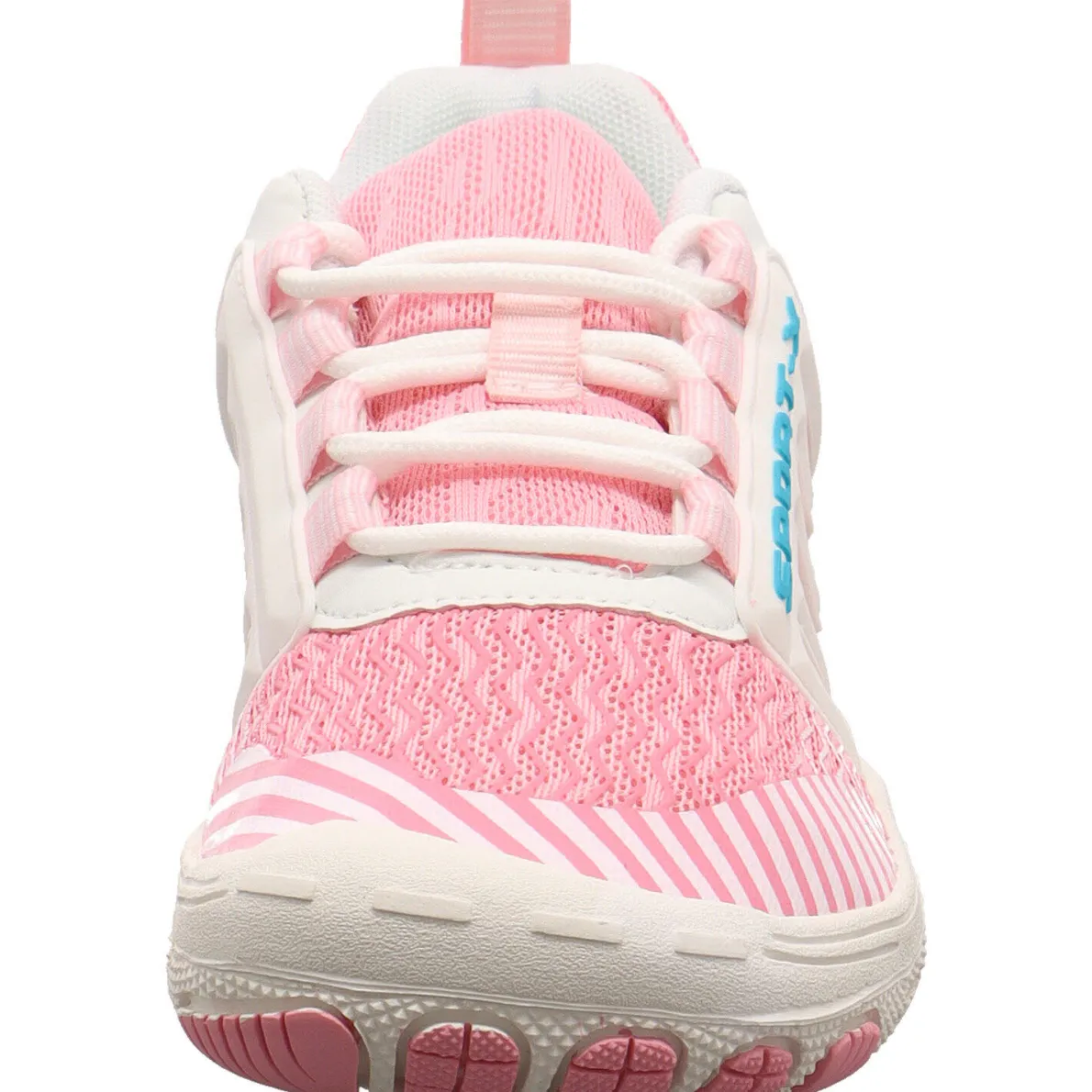 Das Obermaterial aus flexiblem Textil Mesh mit Parts aus Synthetik in Rosa und Weiß ist ein echter Hingucker. Die Aufschrift an der Seite rundet den Look gekonnt ab.