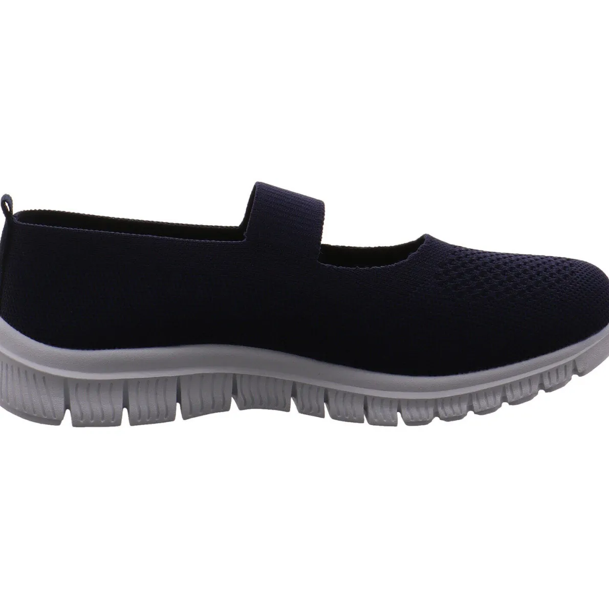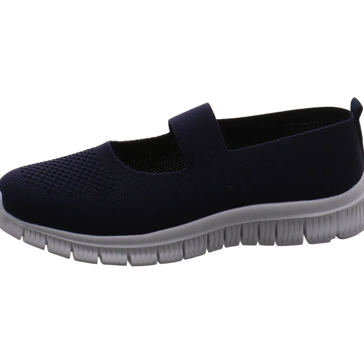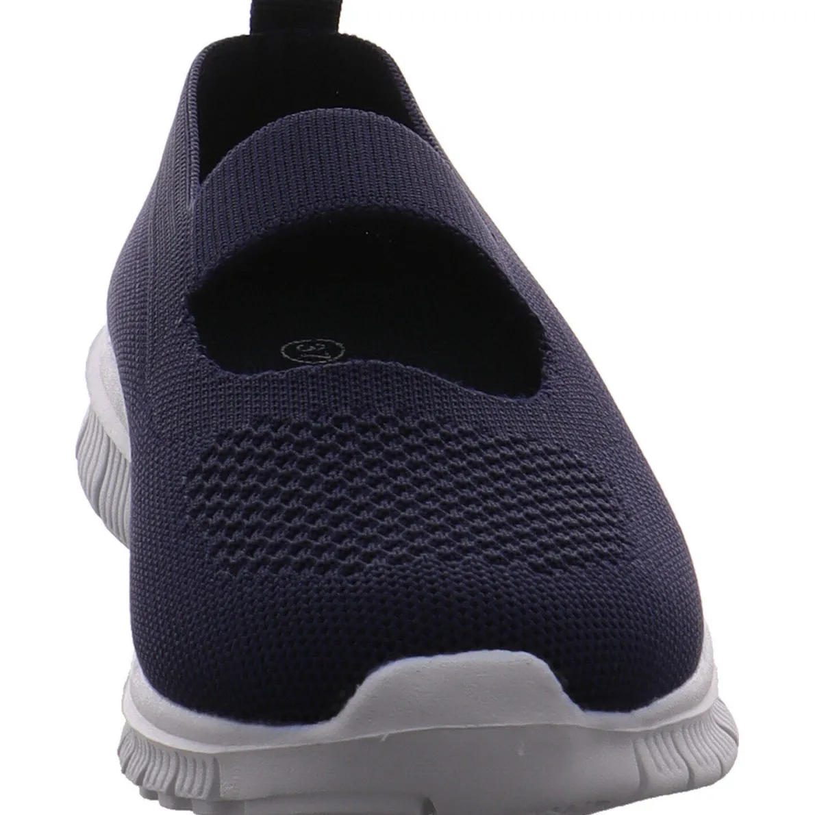 Das flexible Textil Obermaterial in Navy Blau, ist mit einer Strickoptik versehen und sorgt somit für eine gute Luftzirkulation. Der Riemen über dem Rist gibt guten Halt. Die Sohle ist gut profiliert und macht das Laufen besonders angenehm.