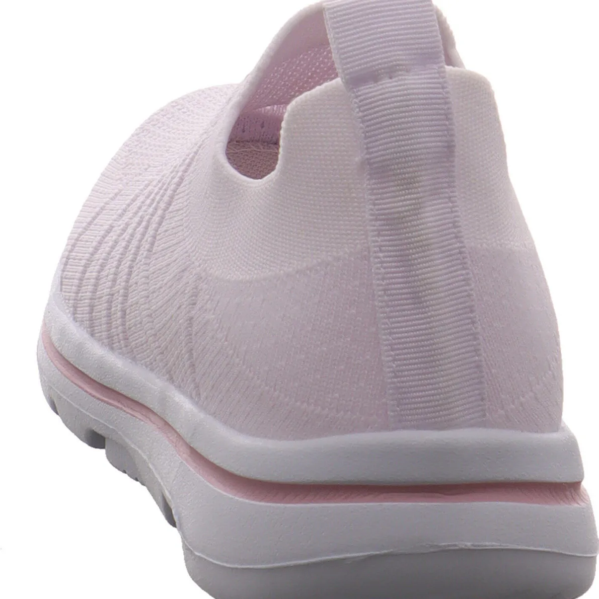 Das flexible Textil Obermaterial in Weiß, ist mit einer Strickoptik versehen und sorgt somit für eine gute Luftzirkulation. Der Einstieg ist wie ein Strumpfbund gearbeitet und bietet zusätzlichen Tragekomfort.